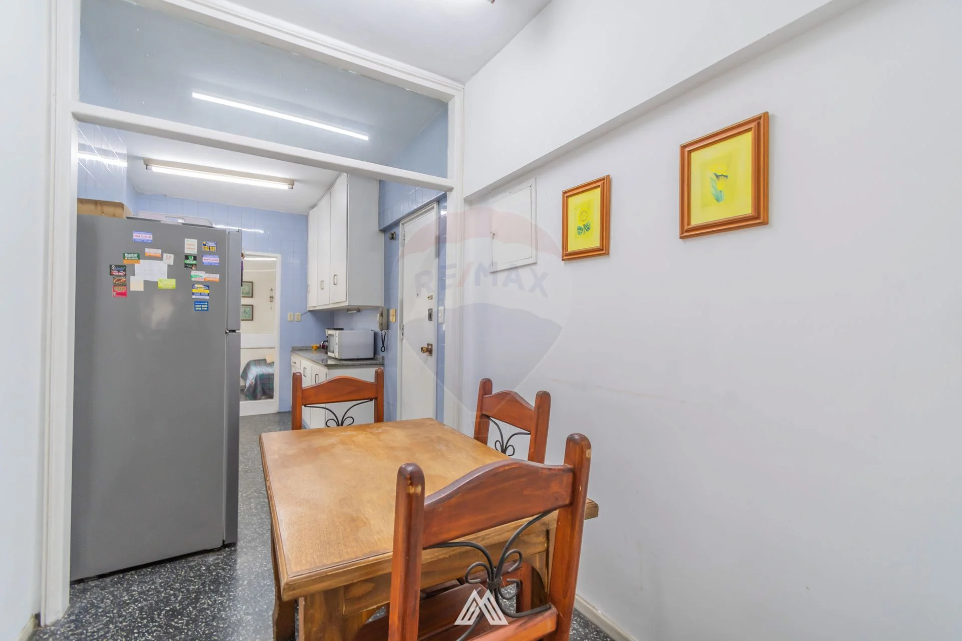 Amplia cocina/comedor con muebles sobre mesada y bajo mesada, a continuación de ella el área de servicio con dormitorio y baño.