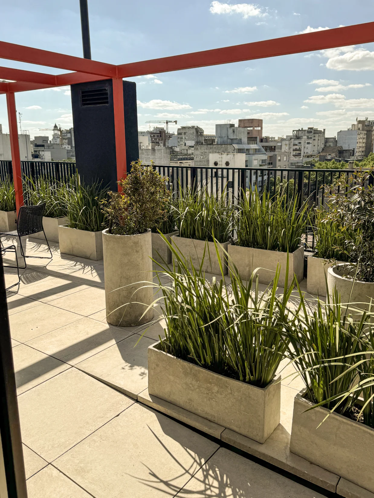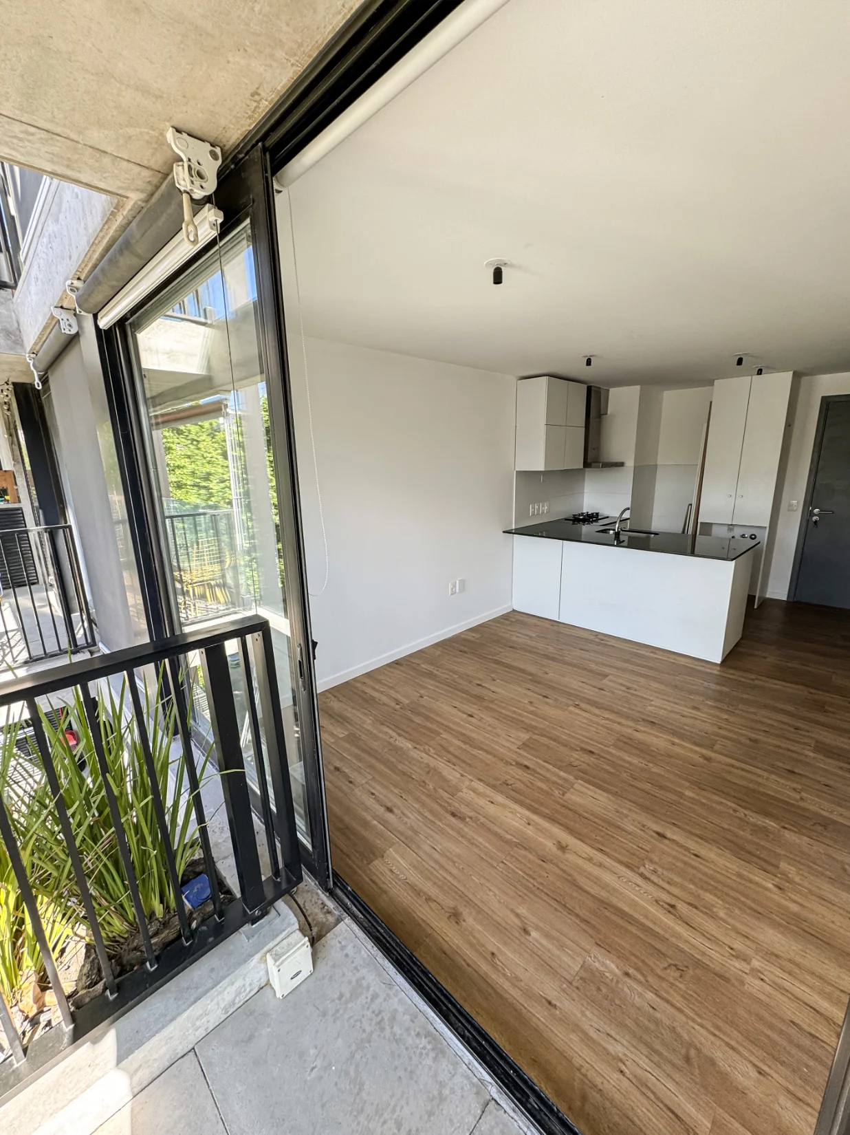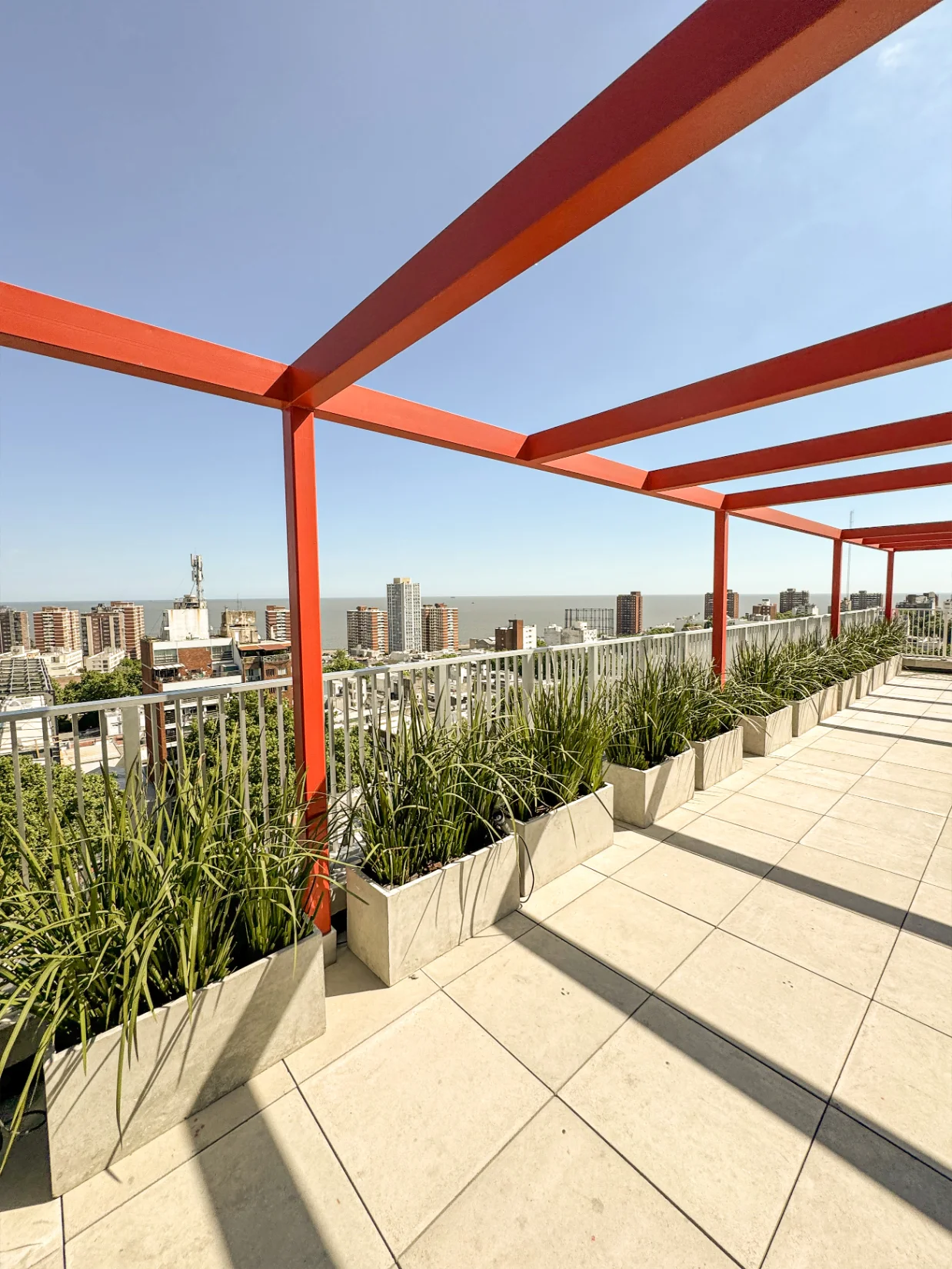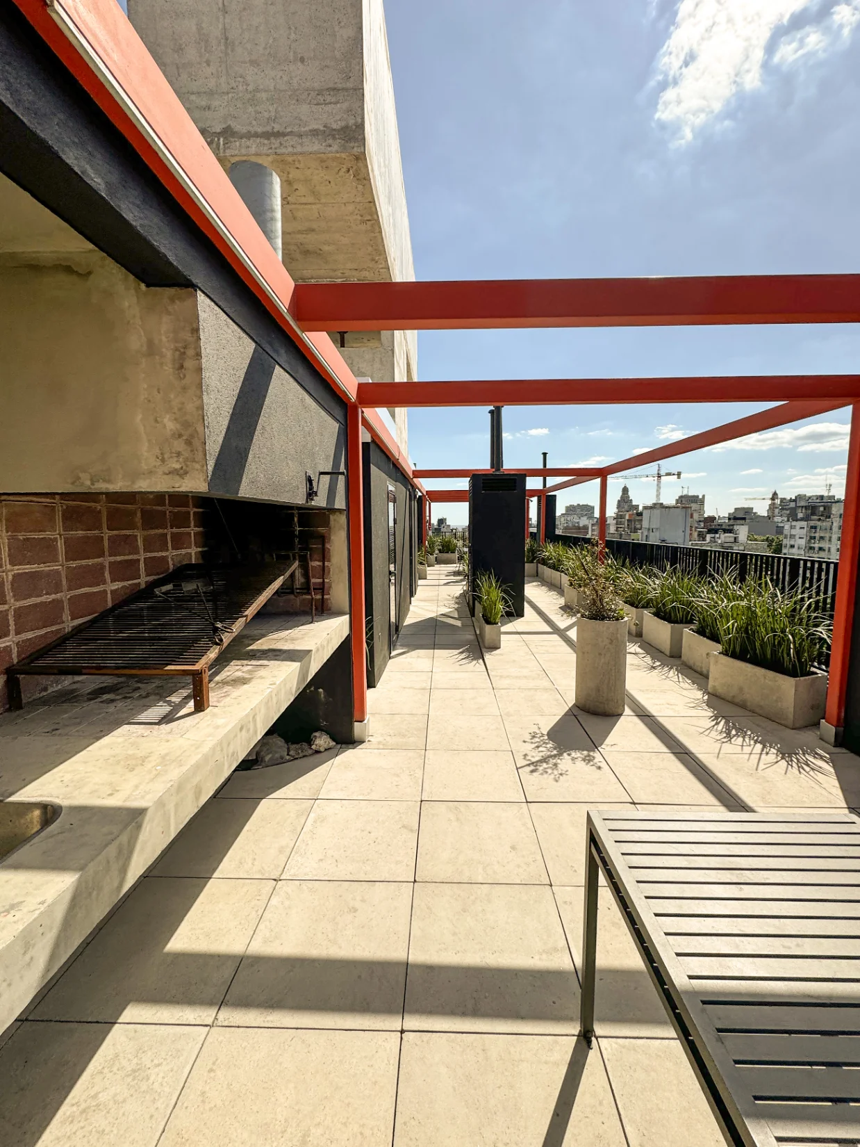 El estar comedor se orienta al norte, cuenta con una gran puerta-ventana de vidrio doble que conecta al balcón, tiene muy buen comportamiento térmico y le ingresa sol todo el año. También cuenta con dos cortinas black-out interiores y previsión de instalación de aire acondicionado.