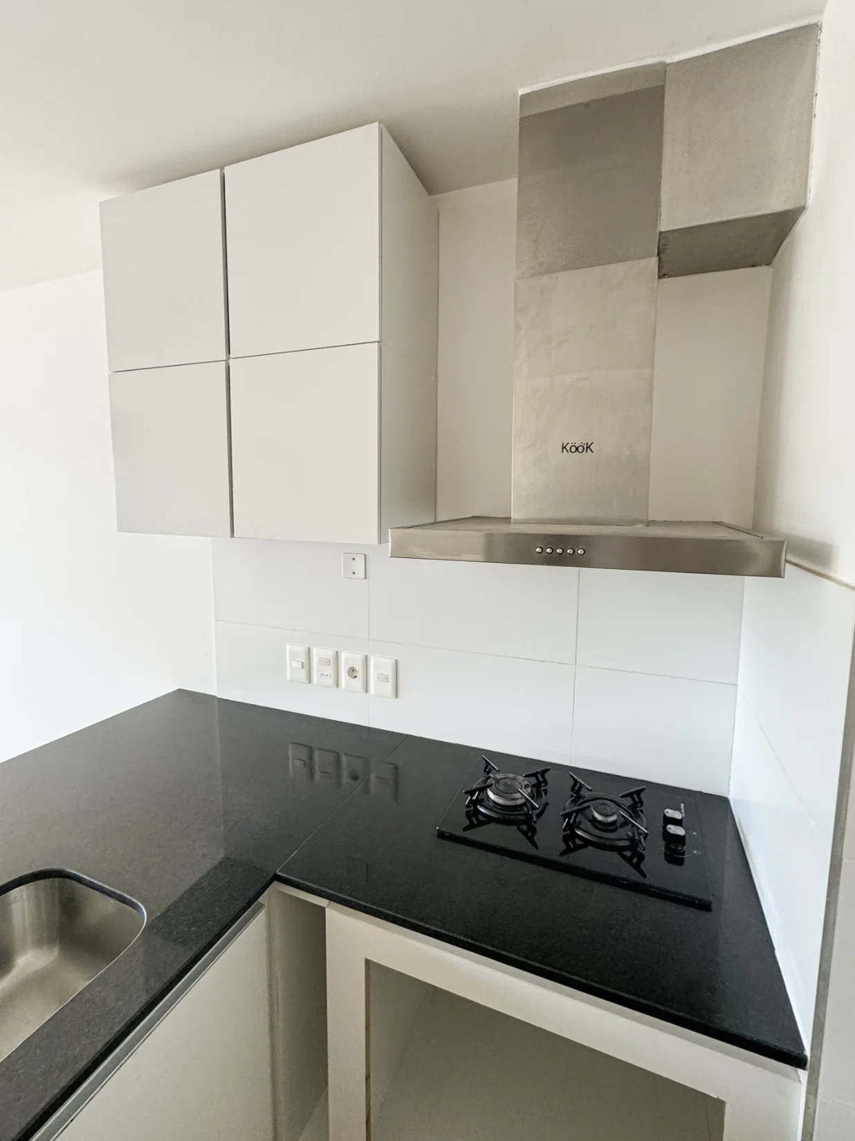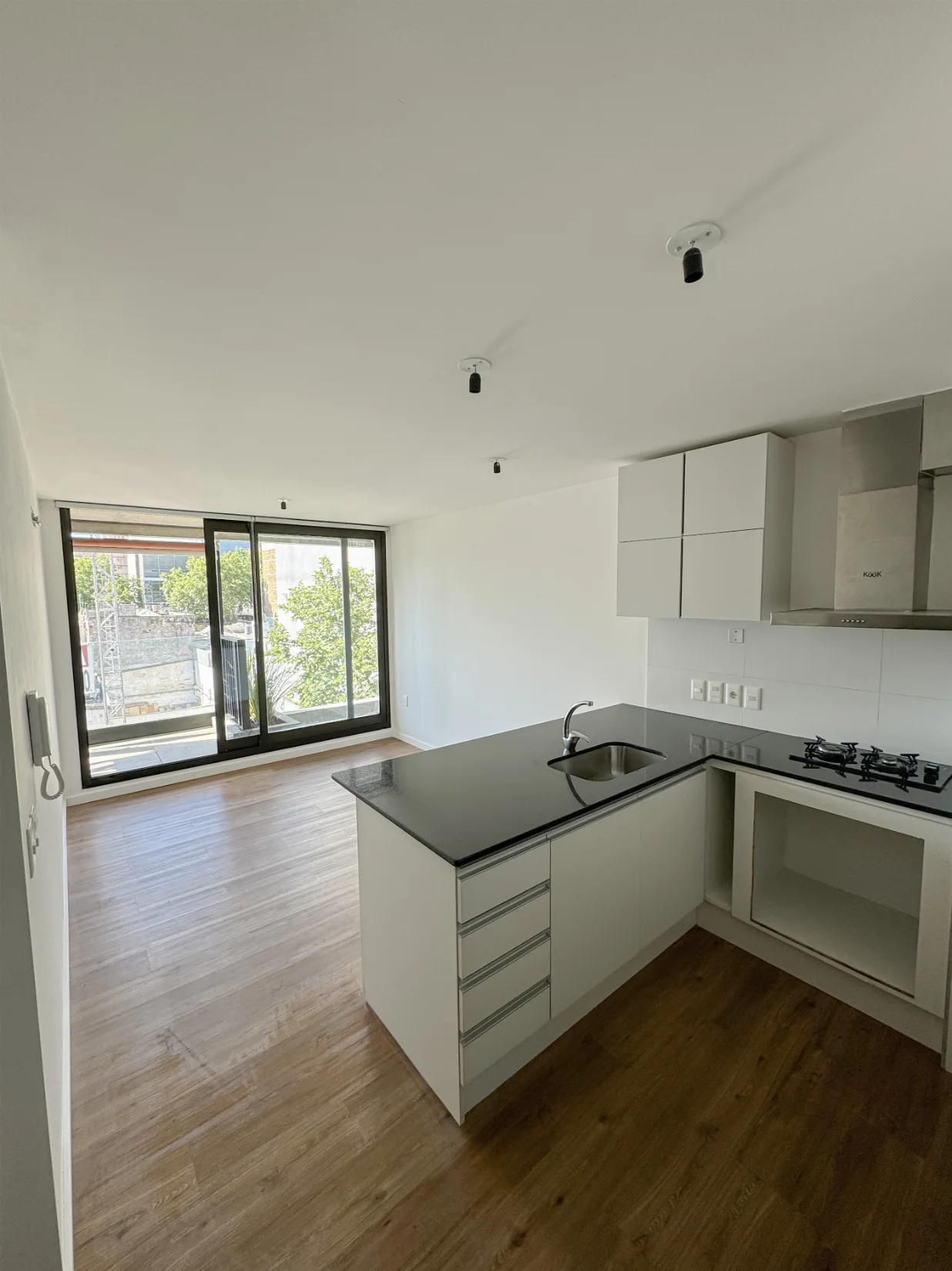 La cocina tiene una mesada de granito de gran tamaño, que permite utilizarse como desayunador, cuenta grifería mono-comando, extractor, anafe a gas, aéreos y cajoneras instaladas. También tiene un espacio e instalación prevista para la garrafa, horno de empotrar, lavarropas y calefón. No cuenta con grasera individual, lo cual no requiere su mantenimiento.