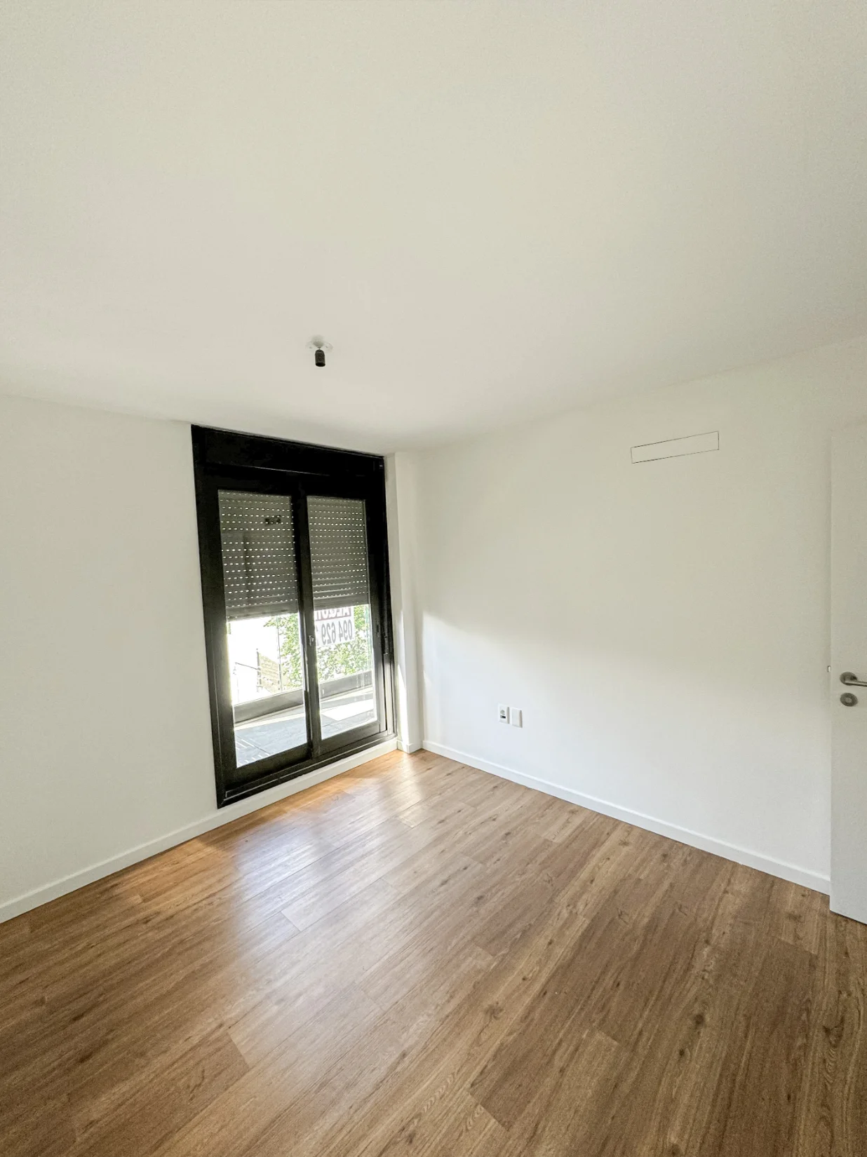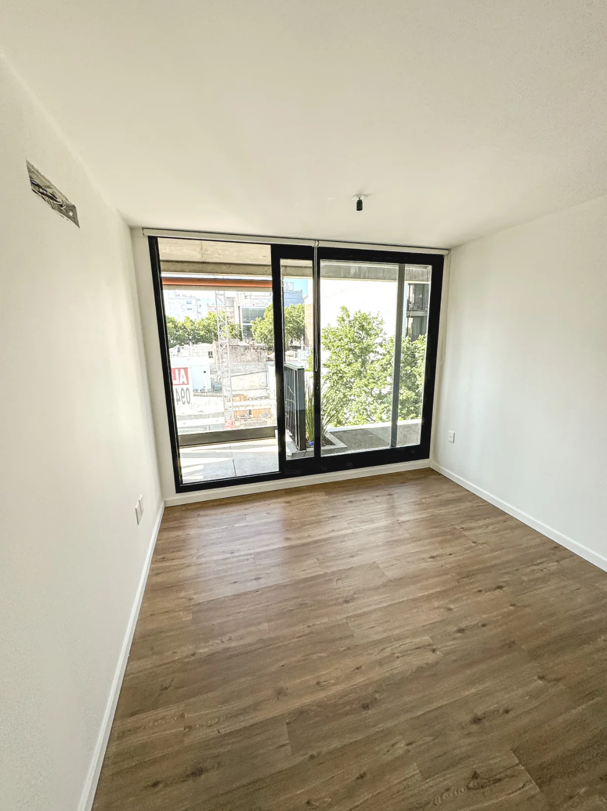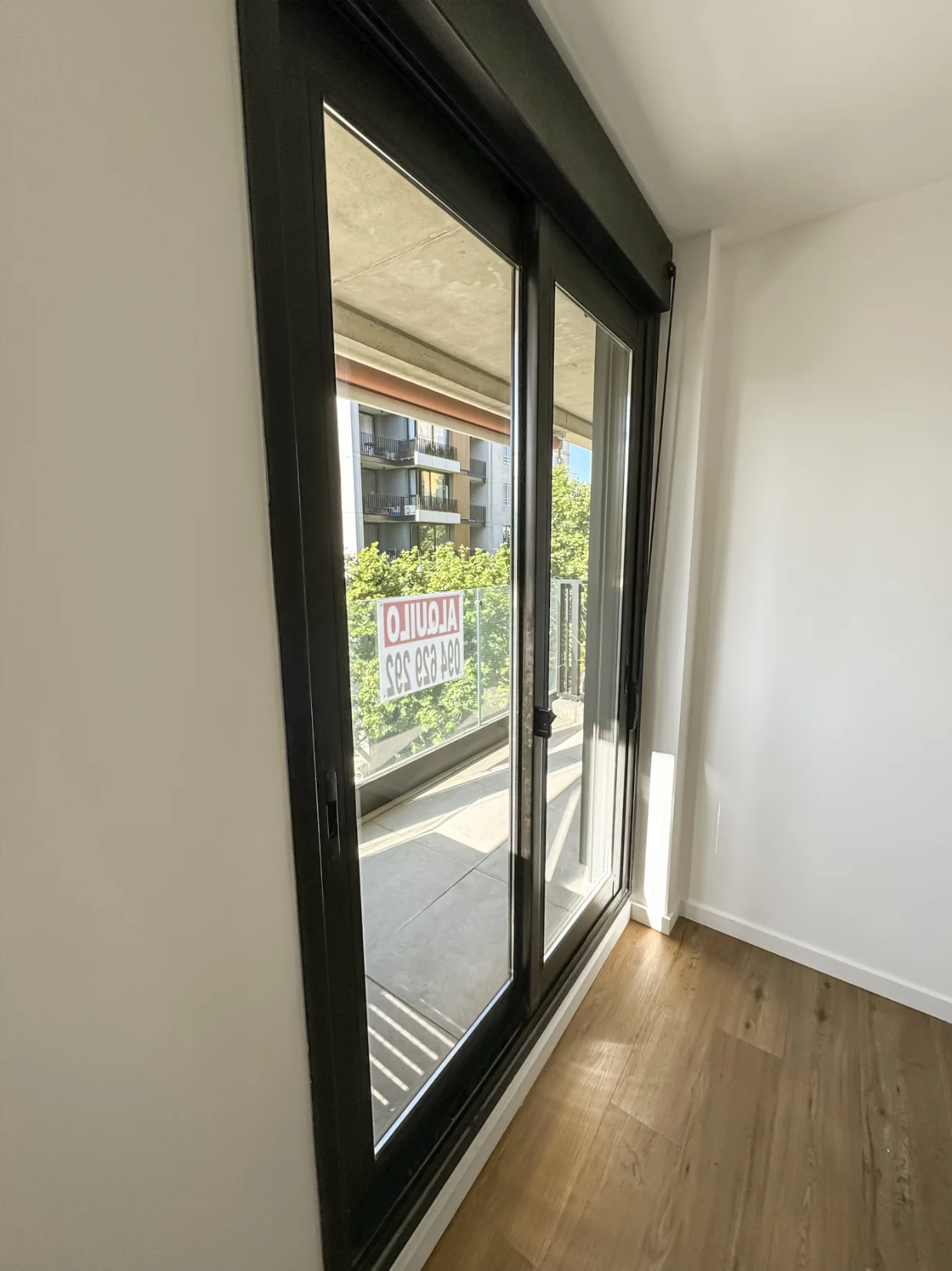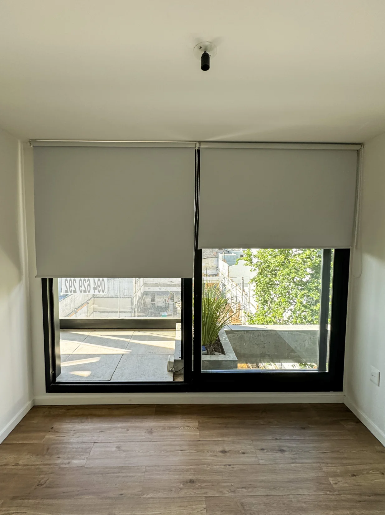El dormitorio también se orienta al norte, cuenta con una puerta-ventana corrediza de vidrio doble que conecta con el balcon y cuenta con un postigo de enrollar. Tiene muy buen comportamiento térmico y le ingresa sol todo el año. Cuenta con previsión de instalación de aire acondicionado.