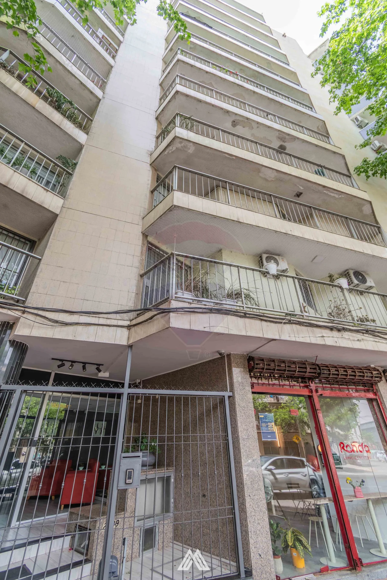 Edificio con portero eléctrico y portón de entrada automático.