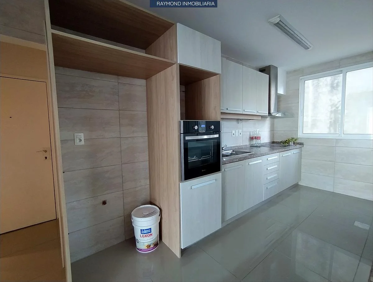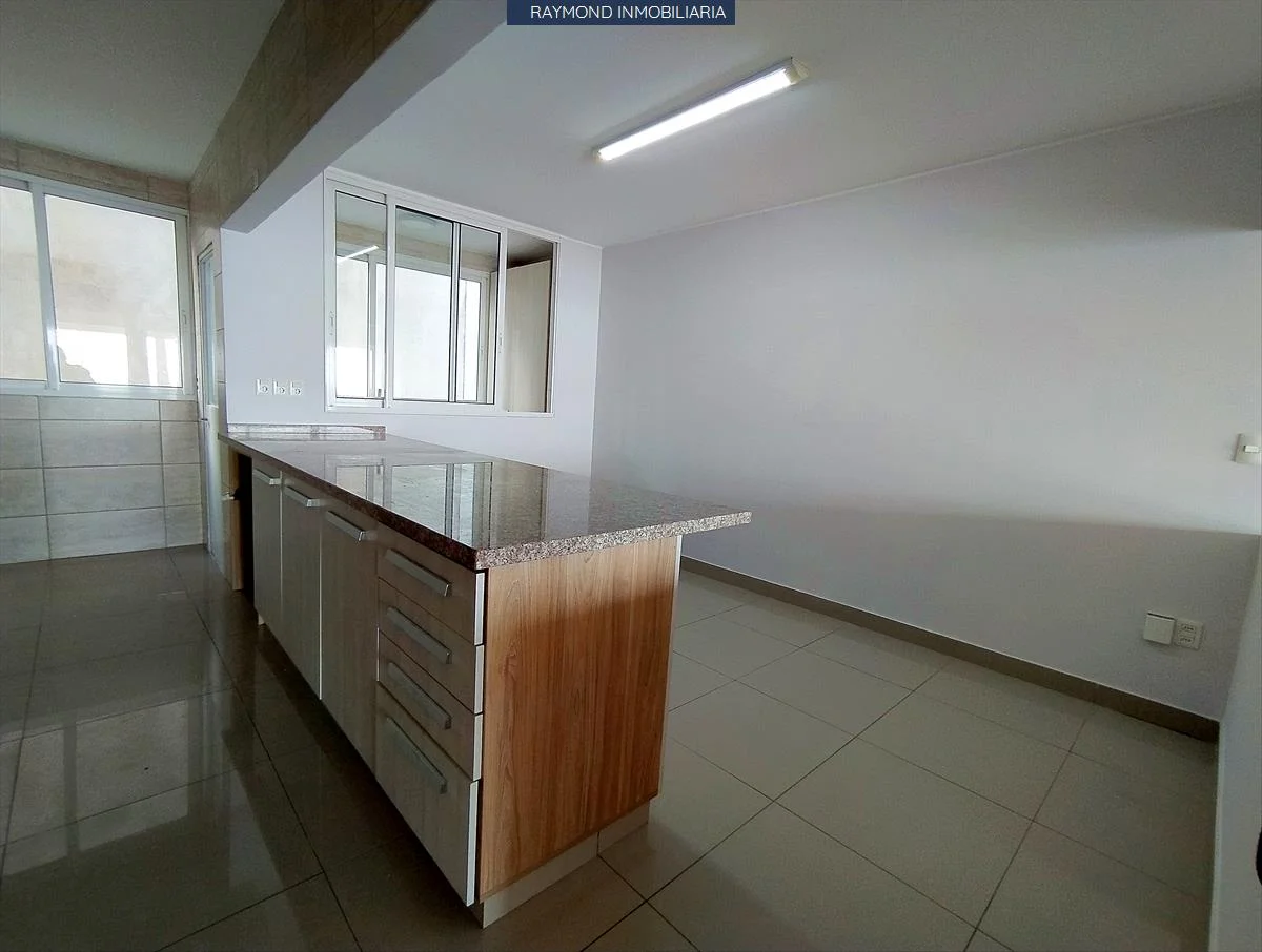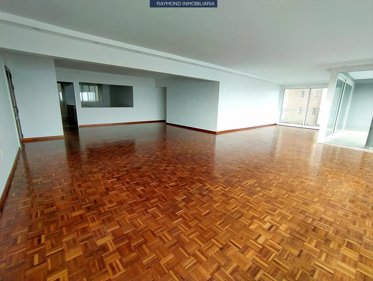 Amplio living comedor con terraza al frente, pisos de parquet plastificado, 4 dormitorios con placares, 4 baños (uno social y uno de servicio), cocina americana con isla, horno y anafe empotrados, servicio completo, losa radiante, vigilancia 24hs.