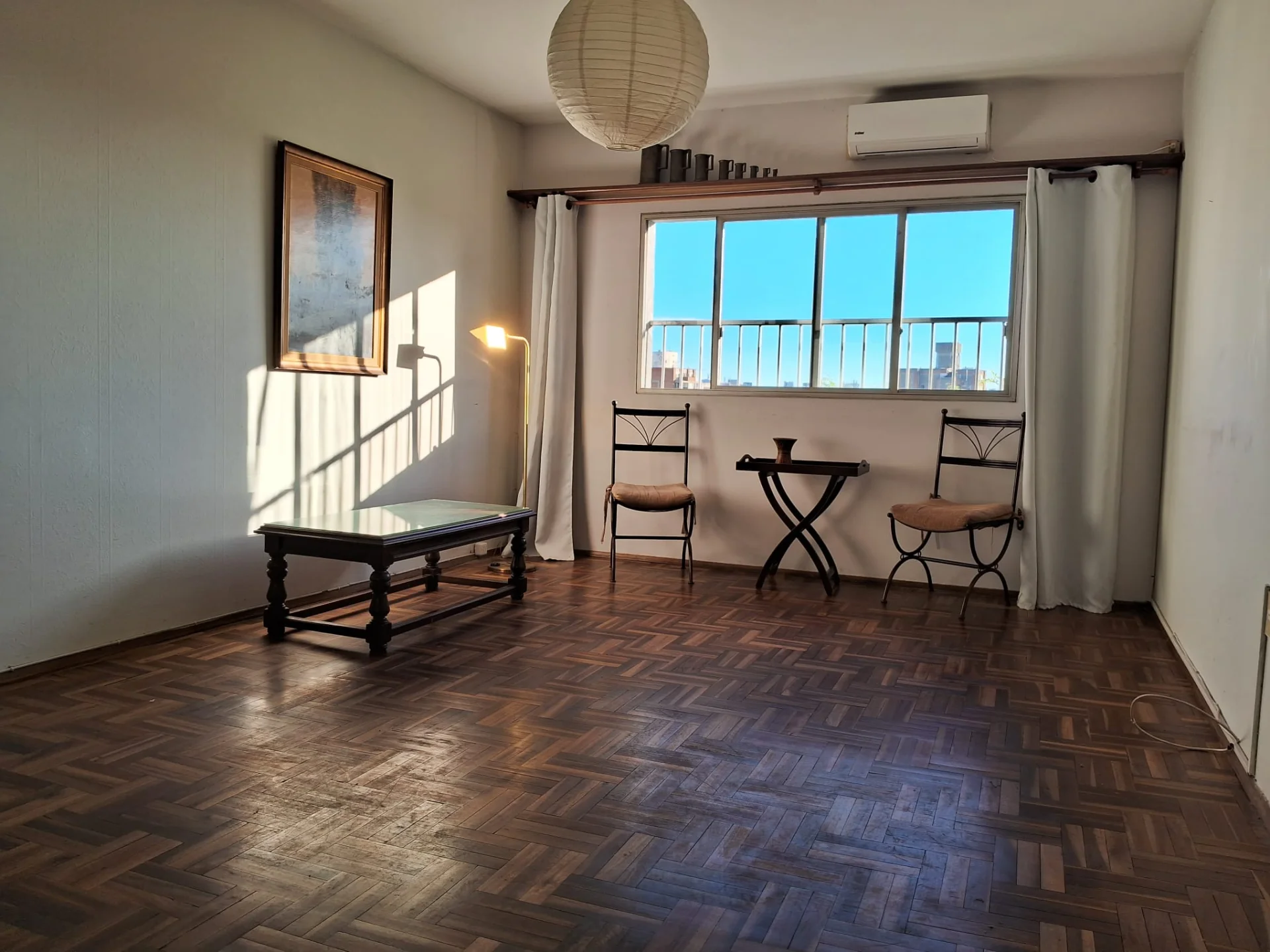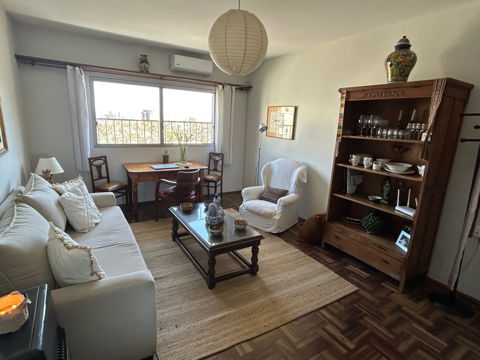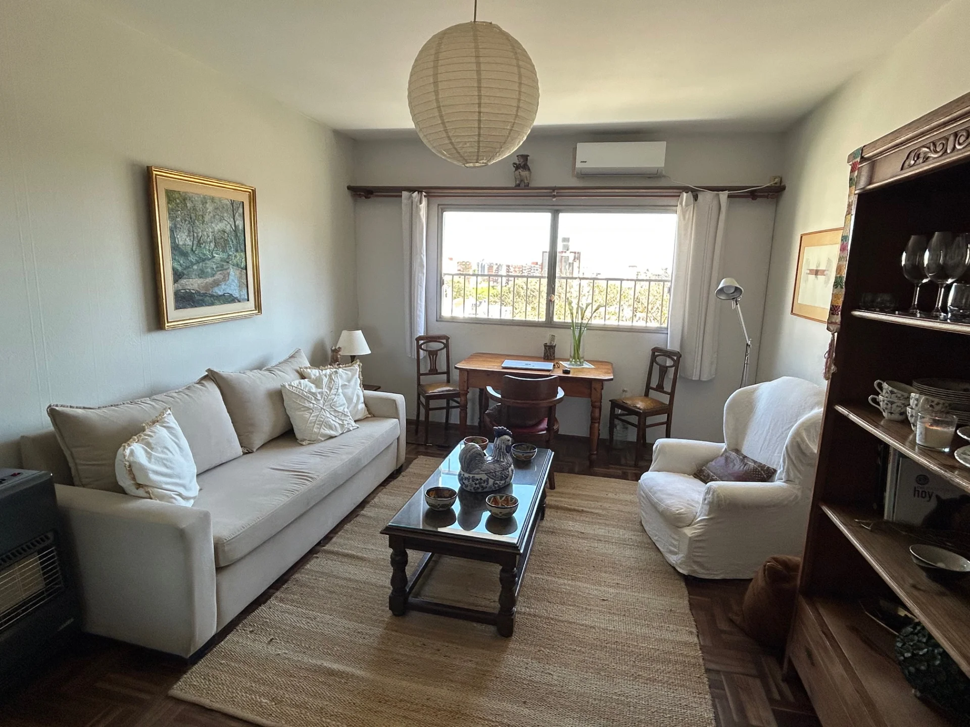 La unidad se encuentra en un piso alto: Living y comedor, cocina definida reciclada con profusión de placares y salida a terraza lavadero. Dispone de dos dormitorios con placares y un baño completo también reciclado. Los pisos son de parquet y cuenta con aires acondicionados.