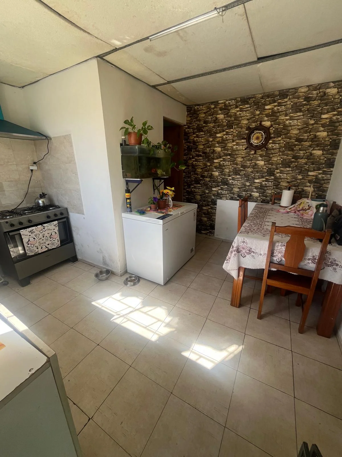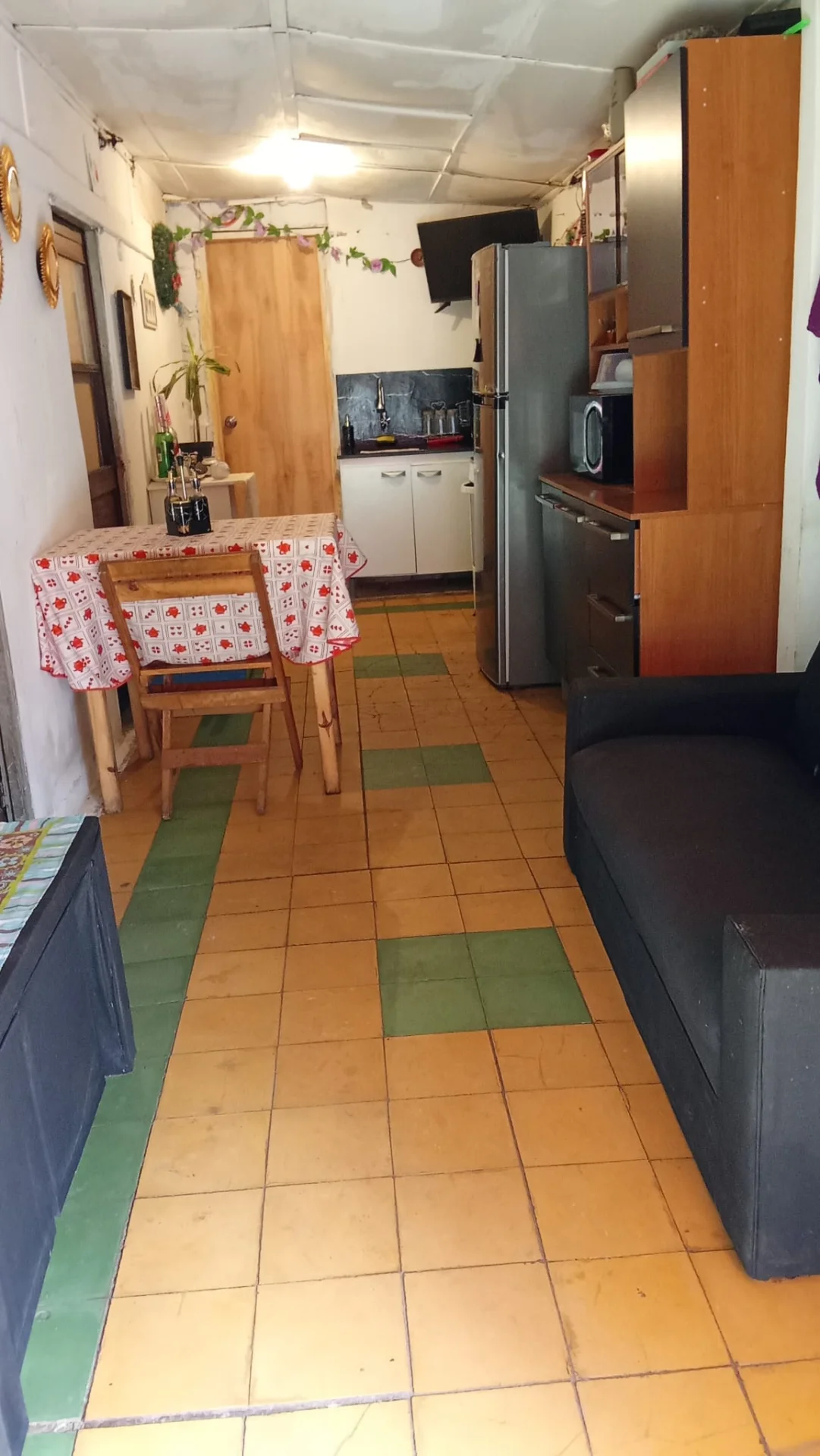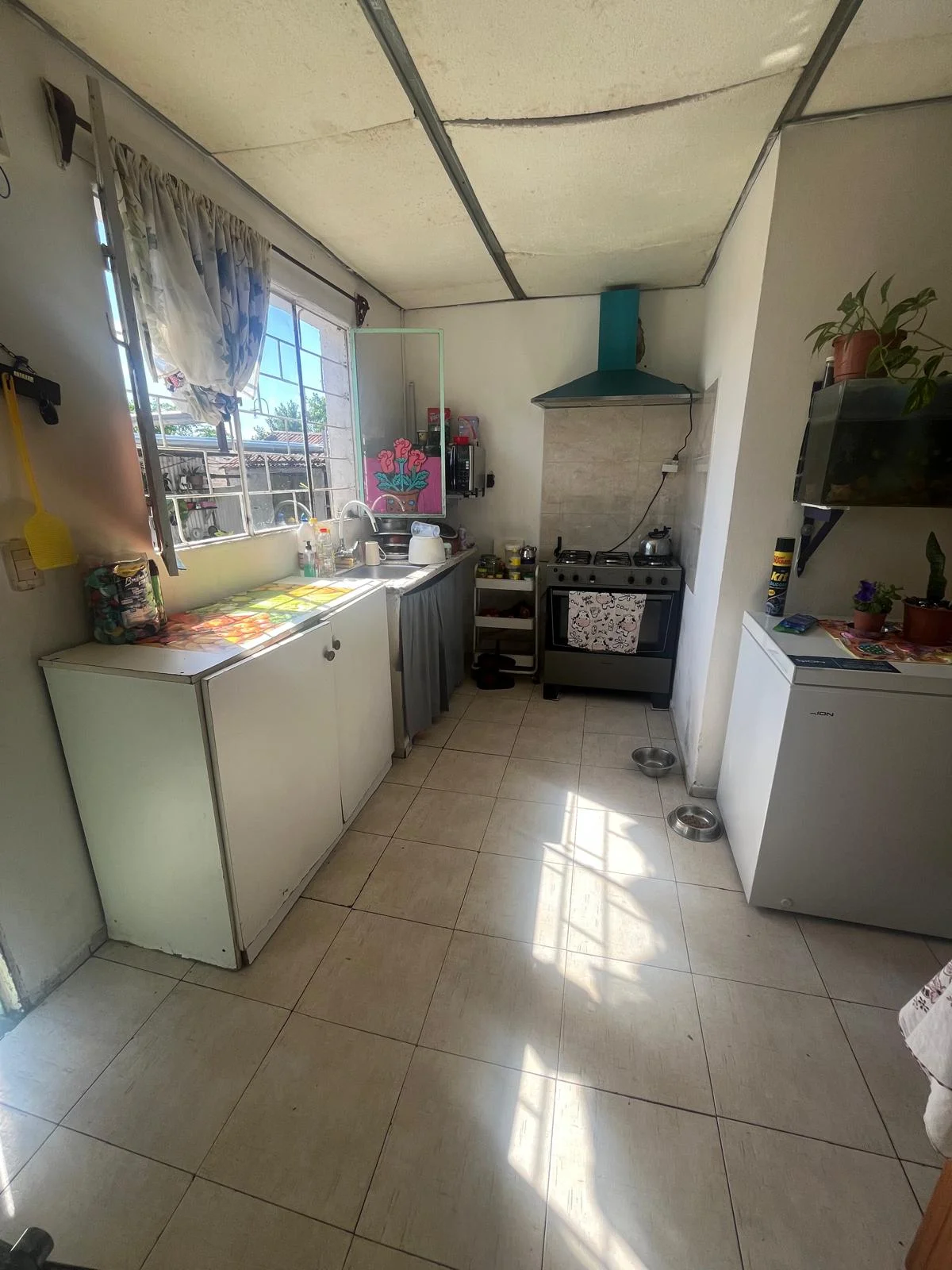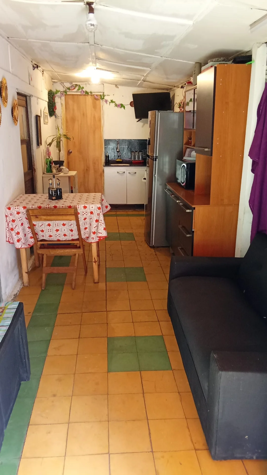 Casa al fondo de techo liviano a dos aguas separada en dos partes. 2 dormitorios y comedor. Baño a nuevo. Cocina - comedor y baño.