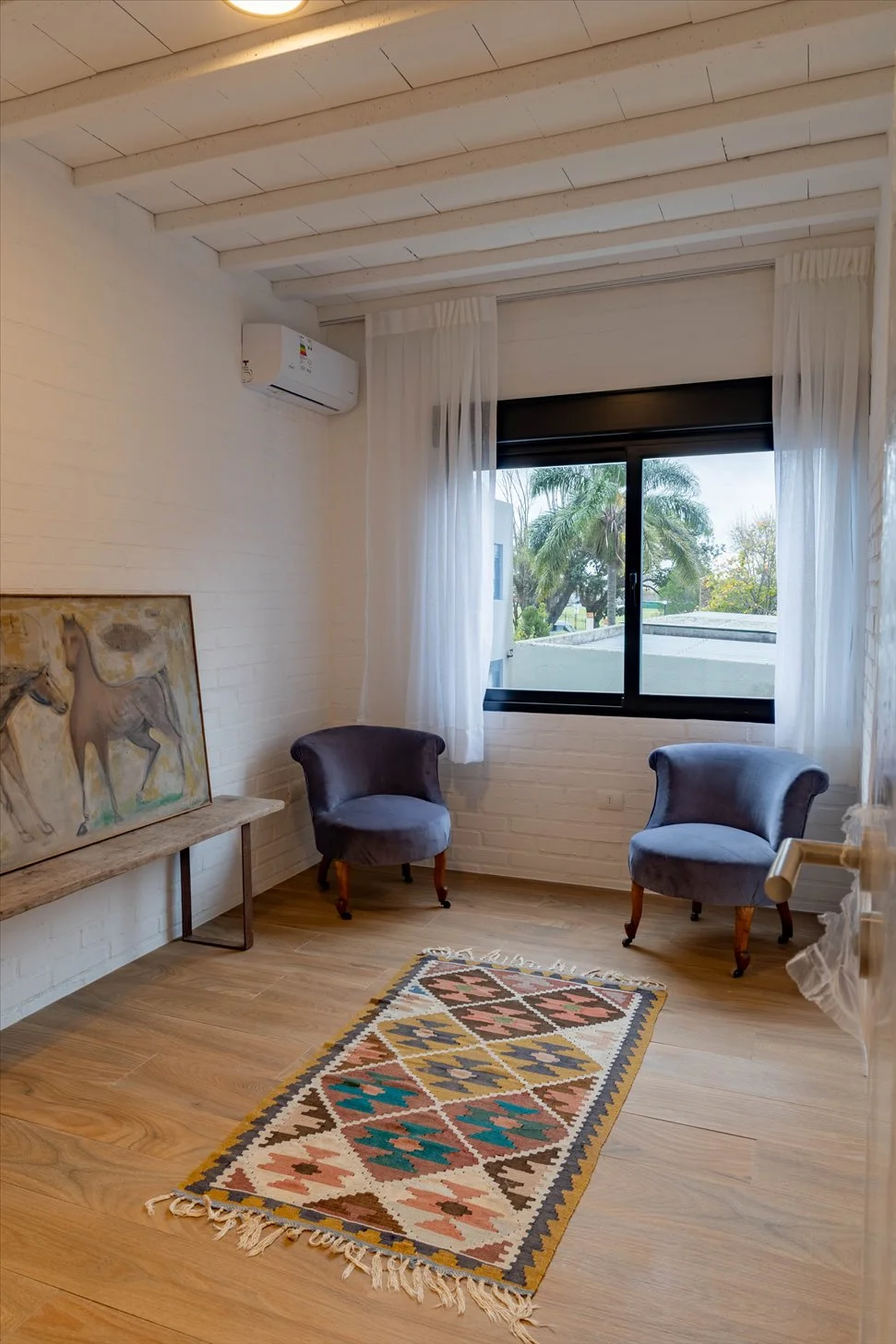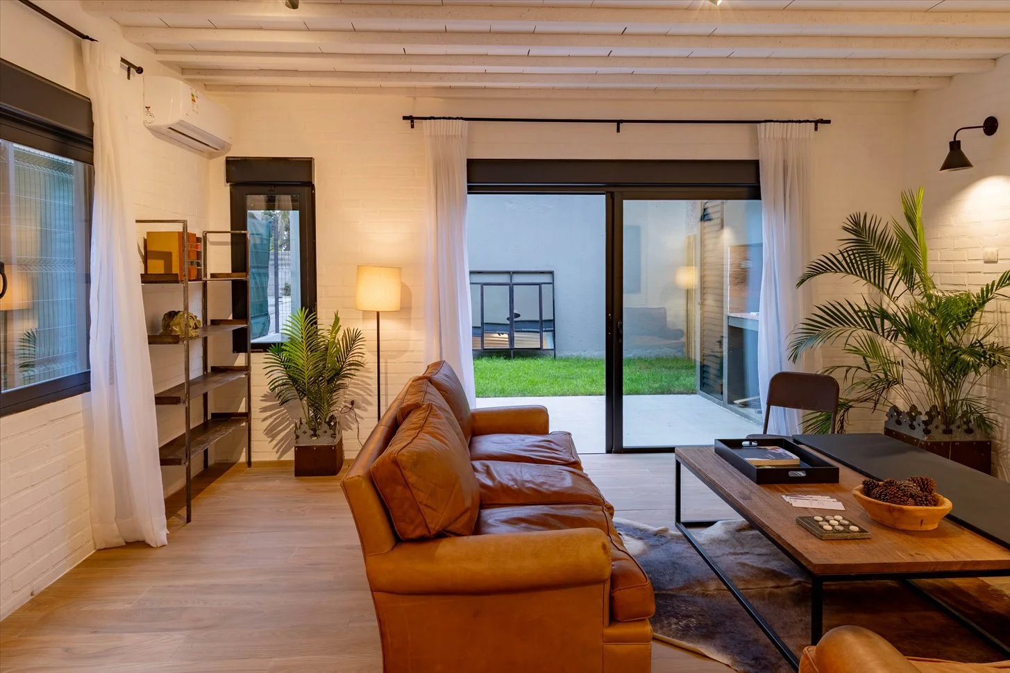 Planta baja: Living amplio con estufa de alto rendimiento y salida al fondo.