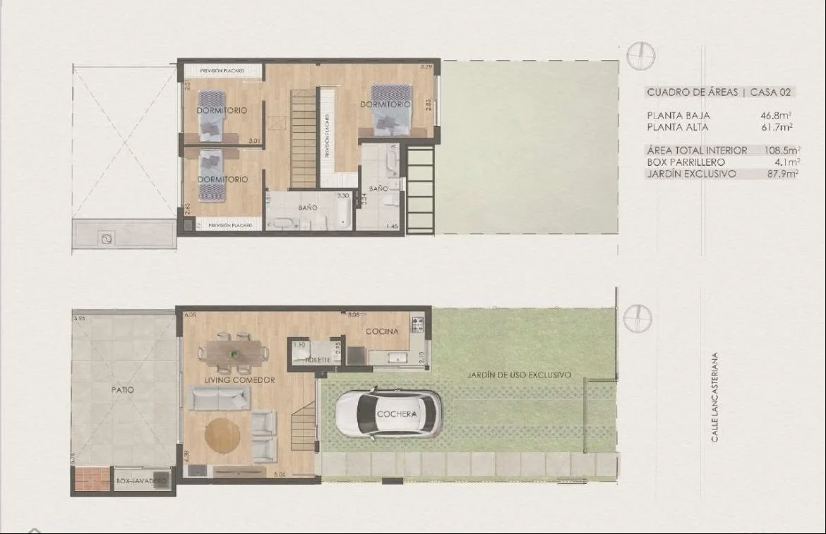 Vidrios dobles en todas las aberturas. Previsión de aires acondicionados en todos los ambientes con cobre.