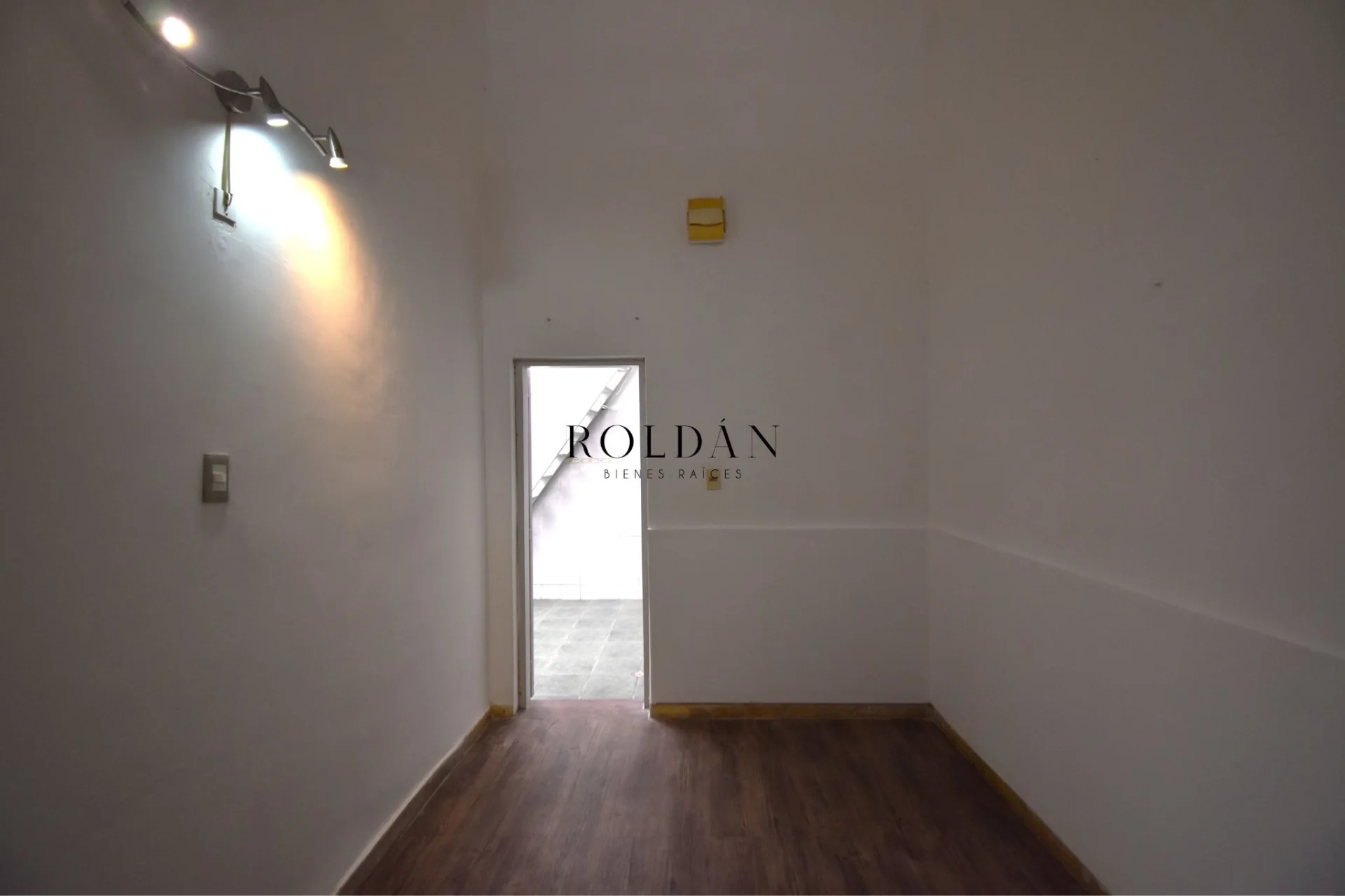 Habitación que se puede usar de escritorio, pequeño dormitorio o vestidor, escalera que permite acceso a planta alta con dos dormitorios al frente con ventanas con persianas y rejas, uno de ellos con aire acondicionado. Baño completo en planta alta.