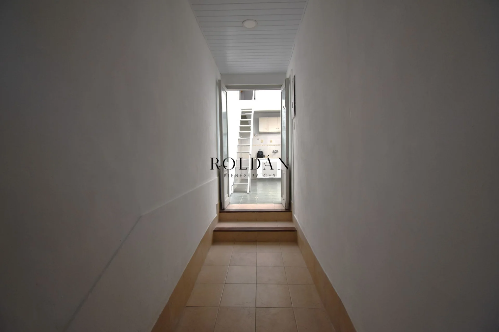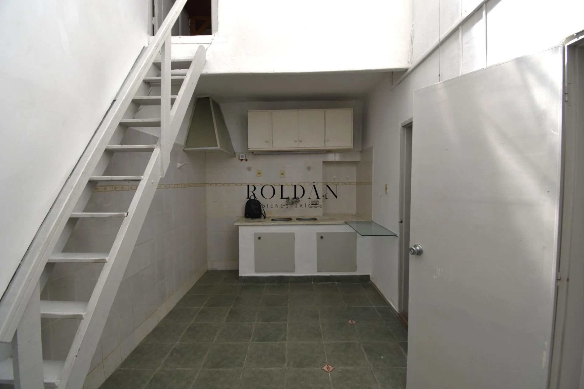 Ingreso a la propiedad, ambiente central de la casa que hace de living comedor, cocina integrada con muebles aéreos y bajo mesada. Dormitorio principal al frente con ventana con persiana y rejas a la calle y estufa a supergas. Segundo dormitorio ciego ubicado también en planta baja. Baño completo en planta baja.