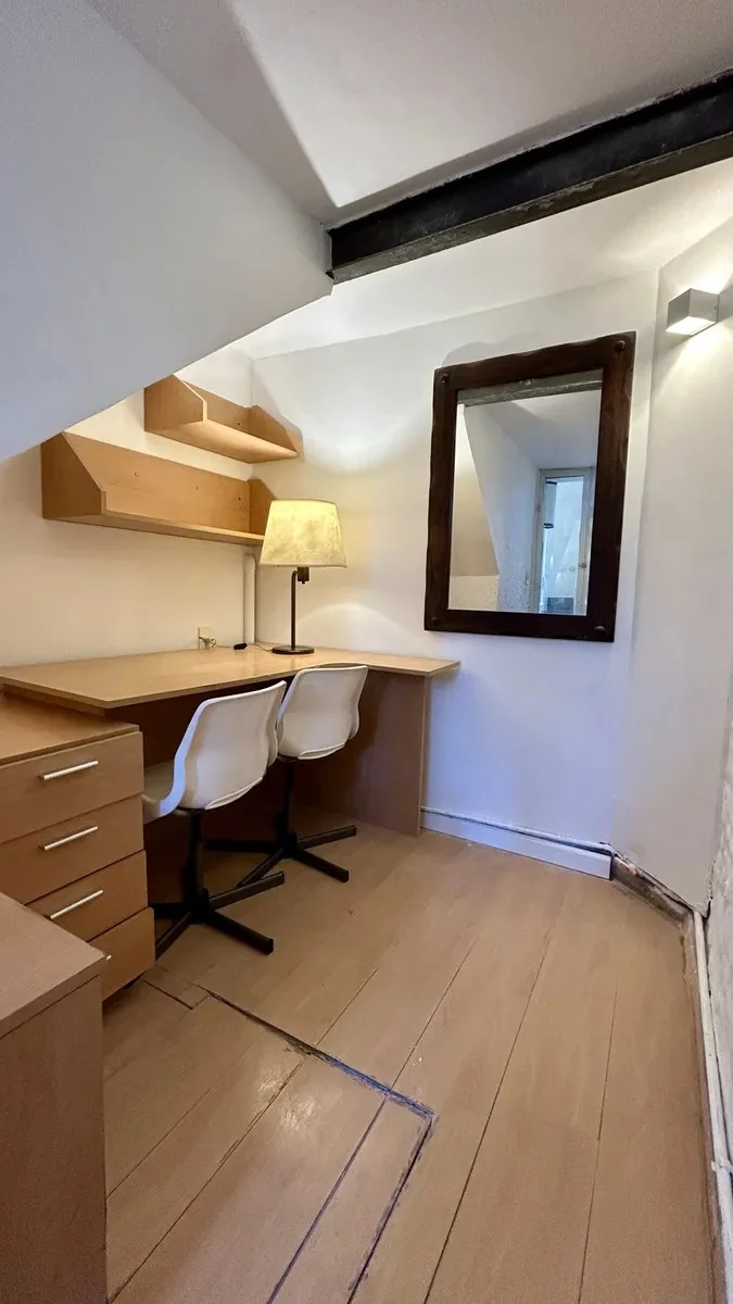 En planta baja cuenta con living, cocina integrada con comedor y escritorio. La planta alta dispone de un dormitorio y un baño. Desde esta planta se accede a una azotea amplia con parrillero.