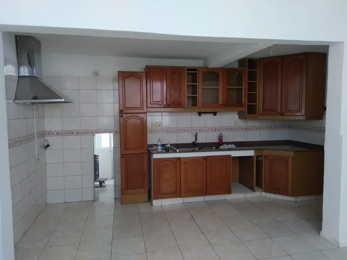 Amplio living-comedor con cocina integrada con placares bajo y sobre mesada, estufa y aire acondicionado.