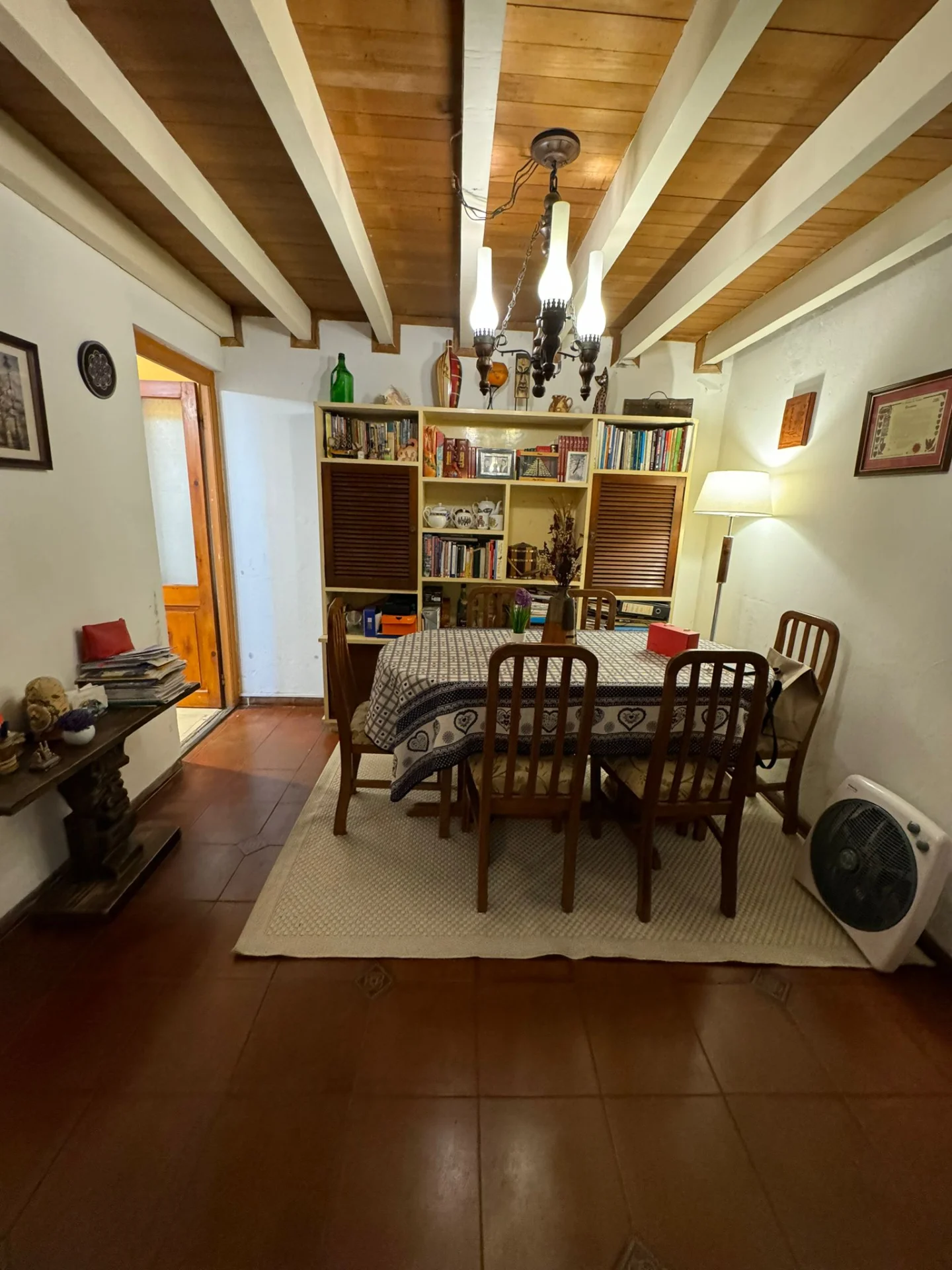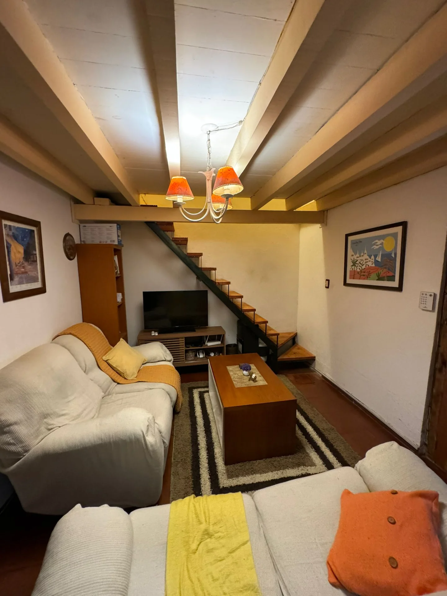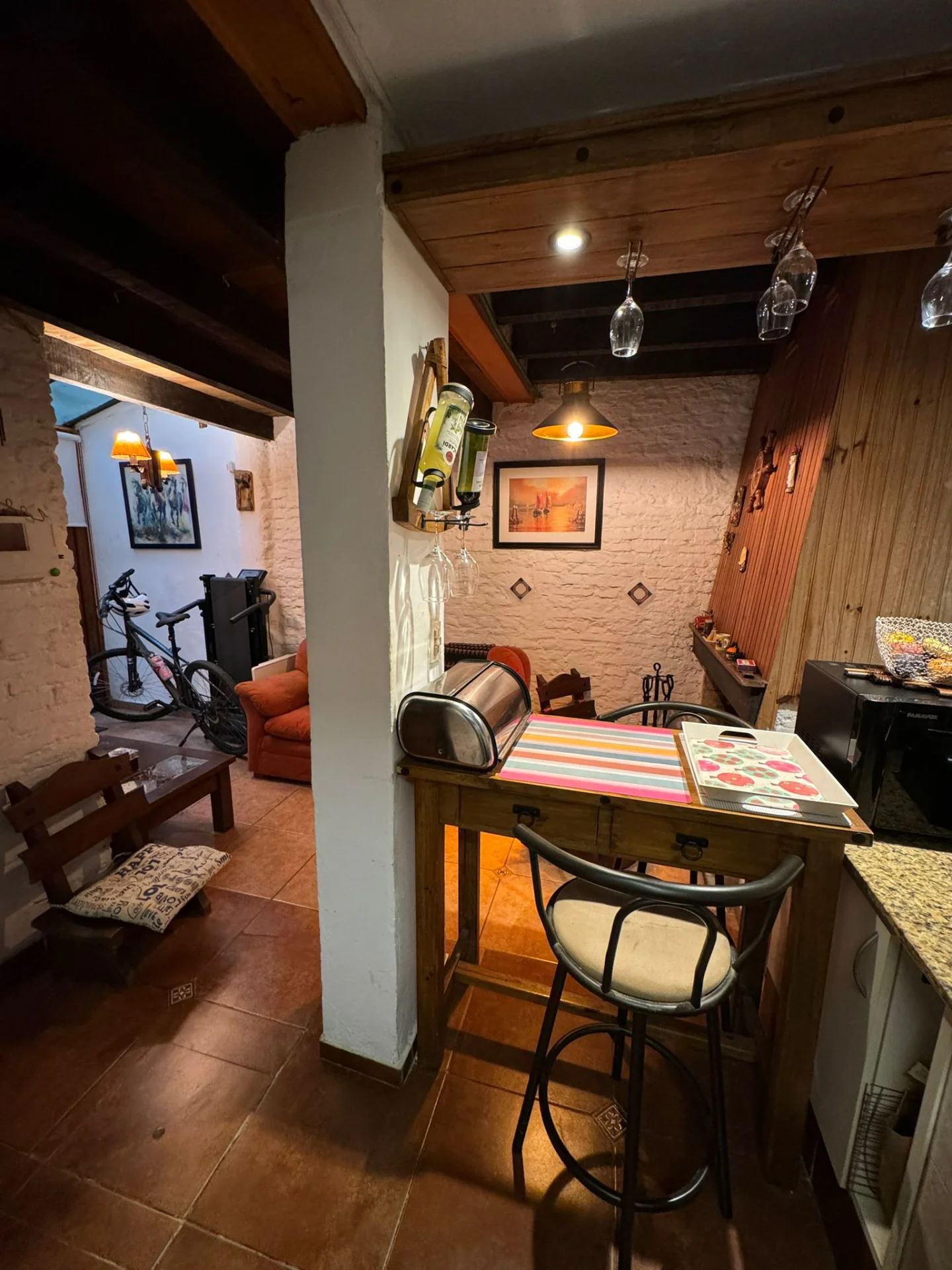 Planta baja: living, comedor, cocina definida con barra funcional y estar con estufa a leña que le brinda un toque diferencial con acceso a pequeño patio de 6 metros cuadrados. Baño completo en buen estado de conservación.