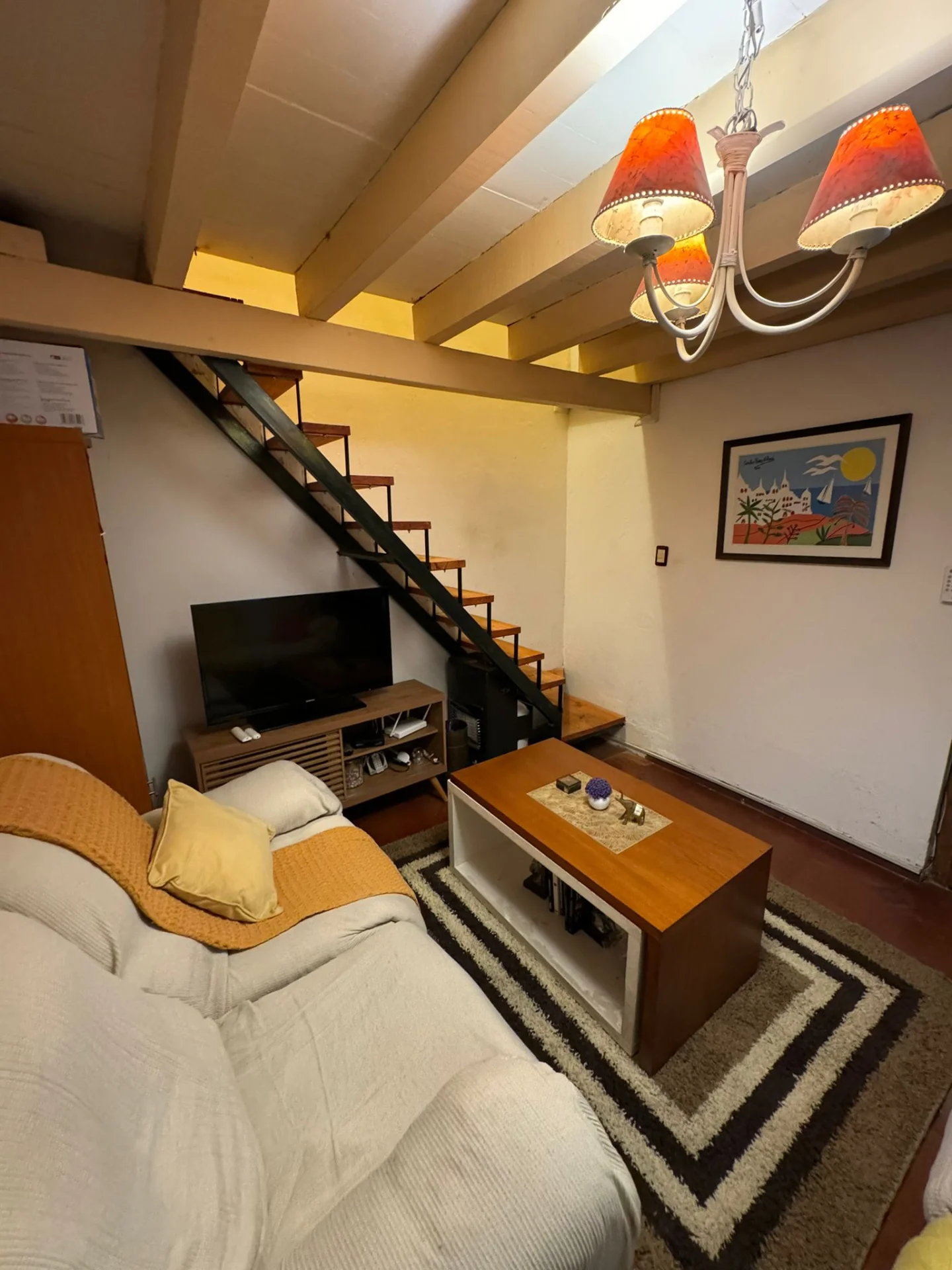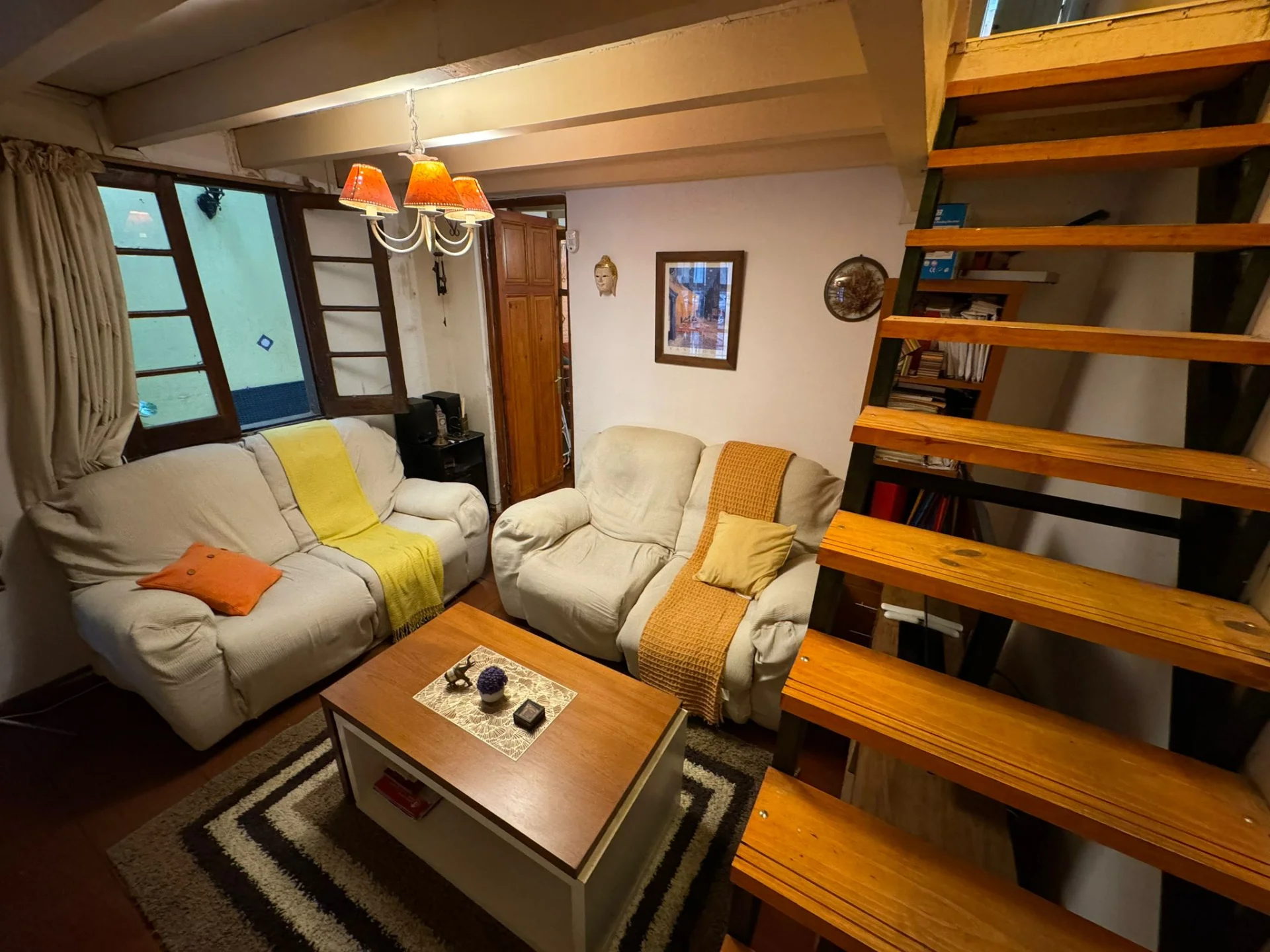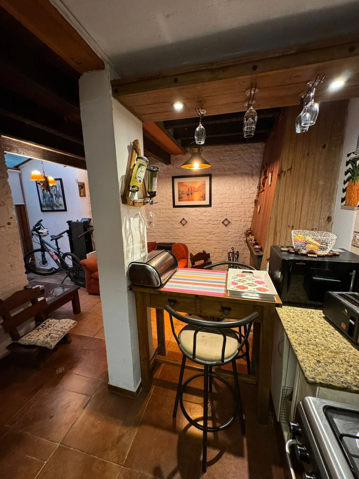 Planta baja: living, comedor, cocina definida con barra funcional y estar con estufa a leña que le brinda un toque diferencial con acceso a pequeño patio de 6 metros cuadrados. Baño completo en buen estado de conservación.