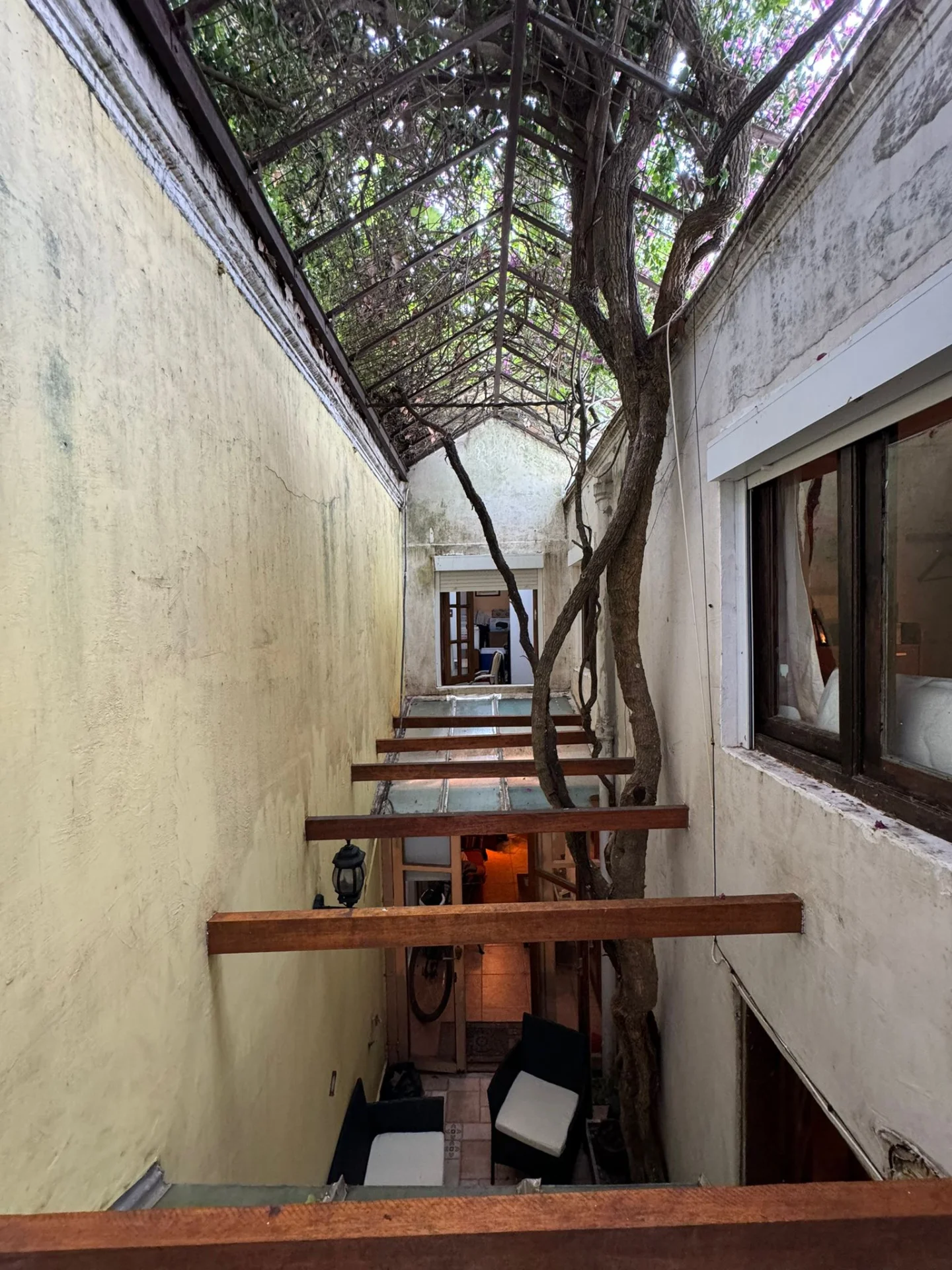 Planta alta: 4 dormitorios (principal con vista al frente), los otros con vista al patio central, baño completo y acceso a la azotea transitable.