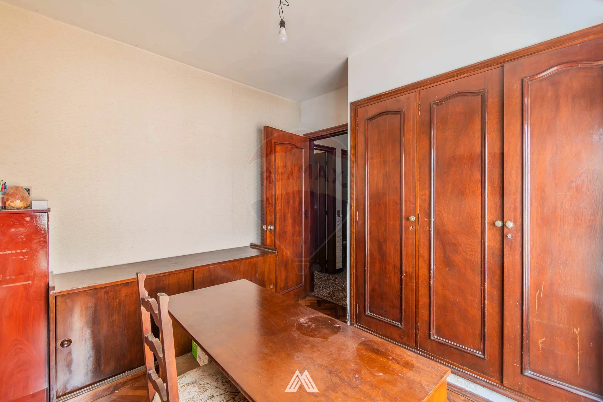 A la planta alta se accede por una gran escalera, en este piso se encuentran 2 dormitorios al frente con salida a amplio balcón con vista a Bulevar Artigas, 1 dormitorio al contrafrente con salida a la terraza y habitación de servicio. Dormitorios con placards. Baño y baño de servicio.