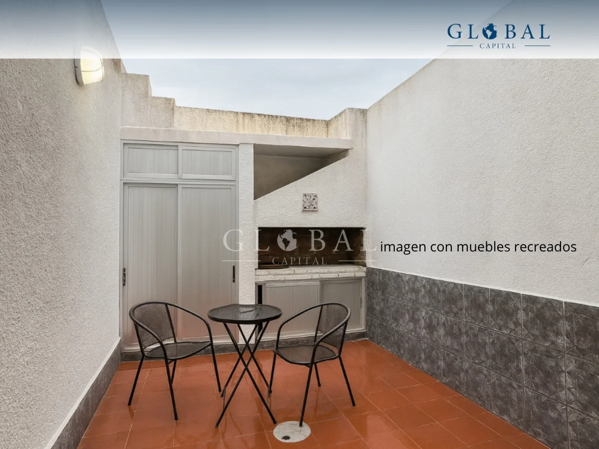 Patio cómodo con parrillero, perfecto para reuniones al aire libre.