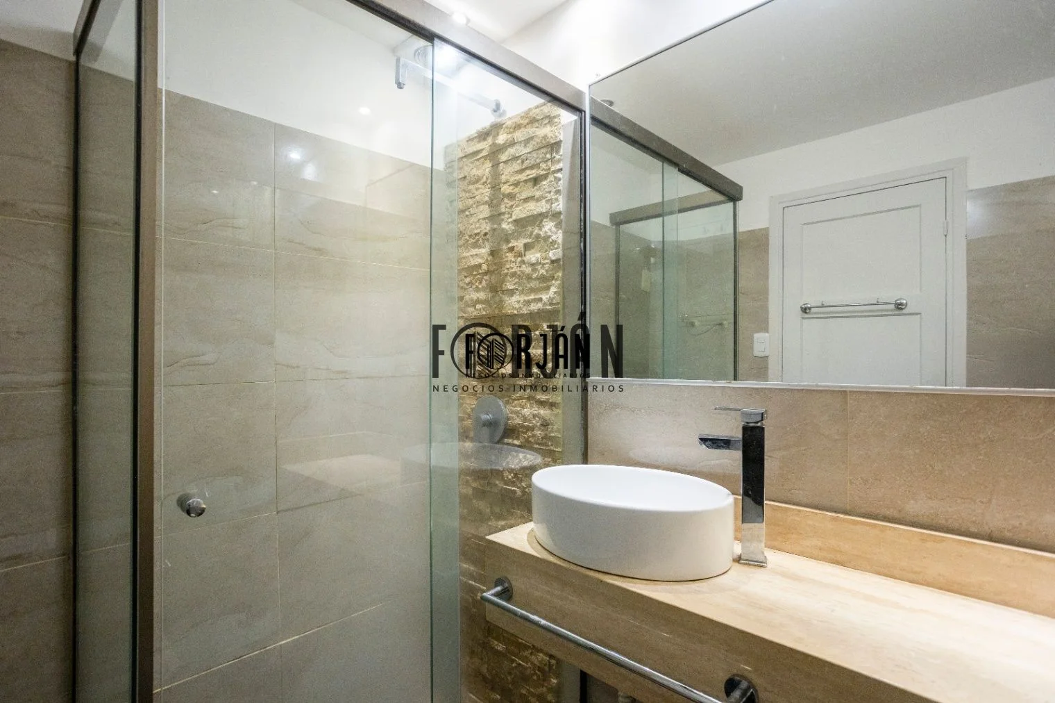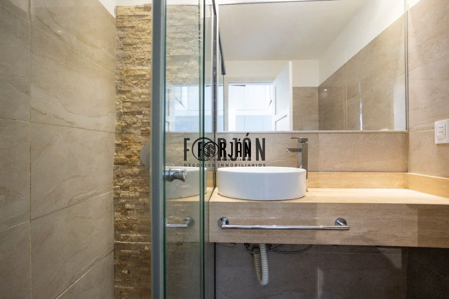 En su interior ofrece un luminoso living comedor al frente con aire acondicionado, una cocina completamente equipada con horno empotrado, anafe, campana extractora, muebles aéreos y bajo mesada.