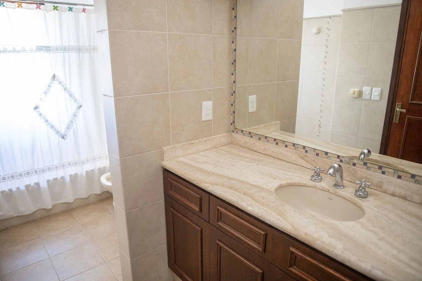 Desarrollada en dos plantas. Luminoso living comedor con estufa a leña y salida directa al jardín, ideal para disfrutar en familia o recibir visitas. Sala de estar, cocina con office y entrepiso multifuncional perfecto para escritorio, área de trabajo o sala de reuniones. Incluye lavadero, toilette y servicio completo. En la planta alta se ubican tres dormitorios, siendo el principal en suite, todos con muy buena iluminación natural. Los otros dos dormitorios comparten un baño completo.