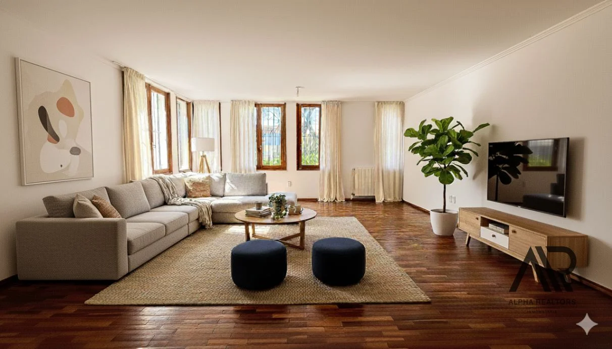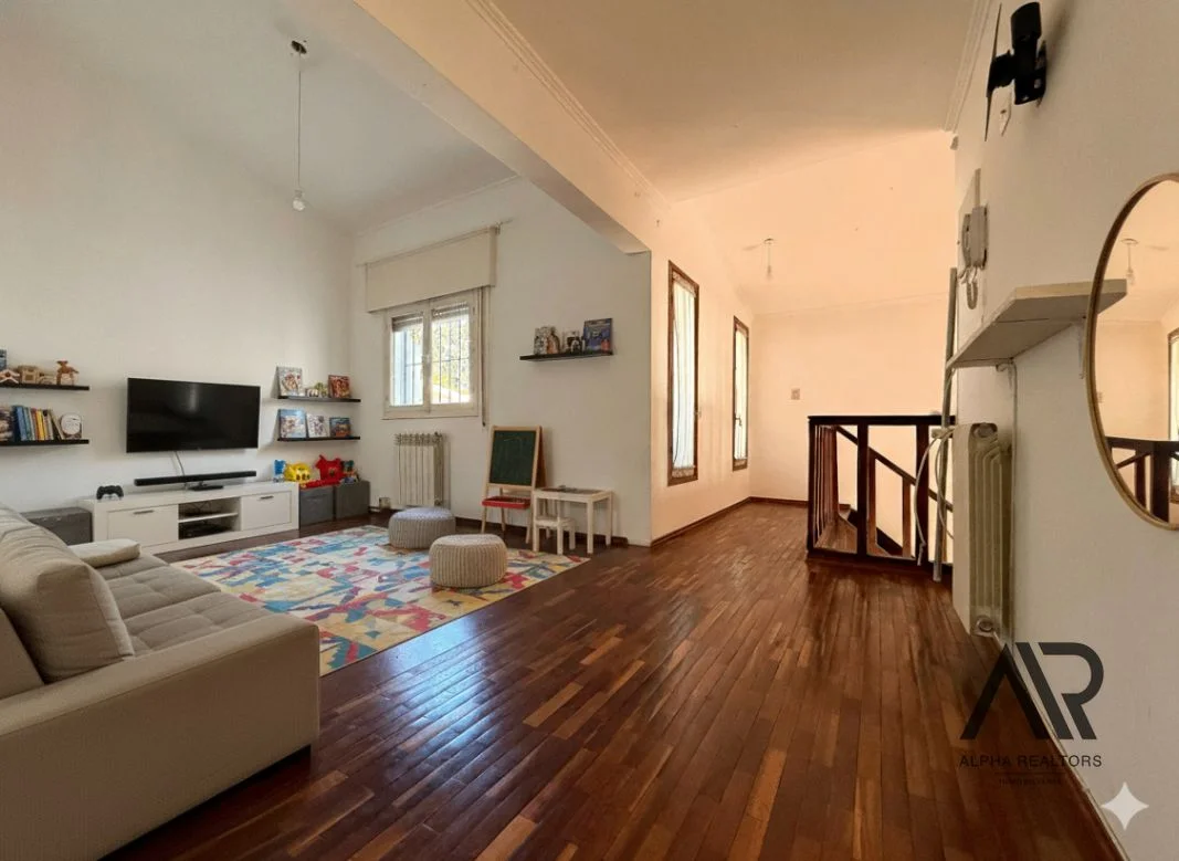 En la planta baja se destaca un gran living-comedor, un recibidor, y una sala de estar con estufa a leña, ideal para disfrutar de un ambiente cálido y acogedor. Los pisos de madera aportan distinción y armonía en todos los espacios.