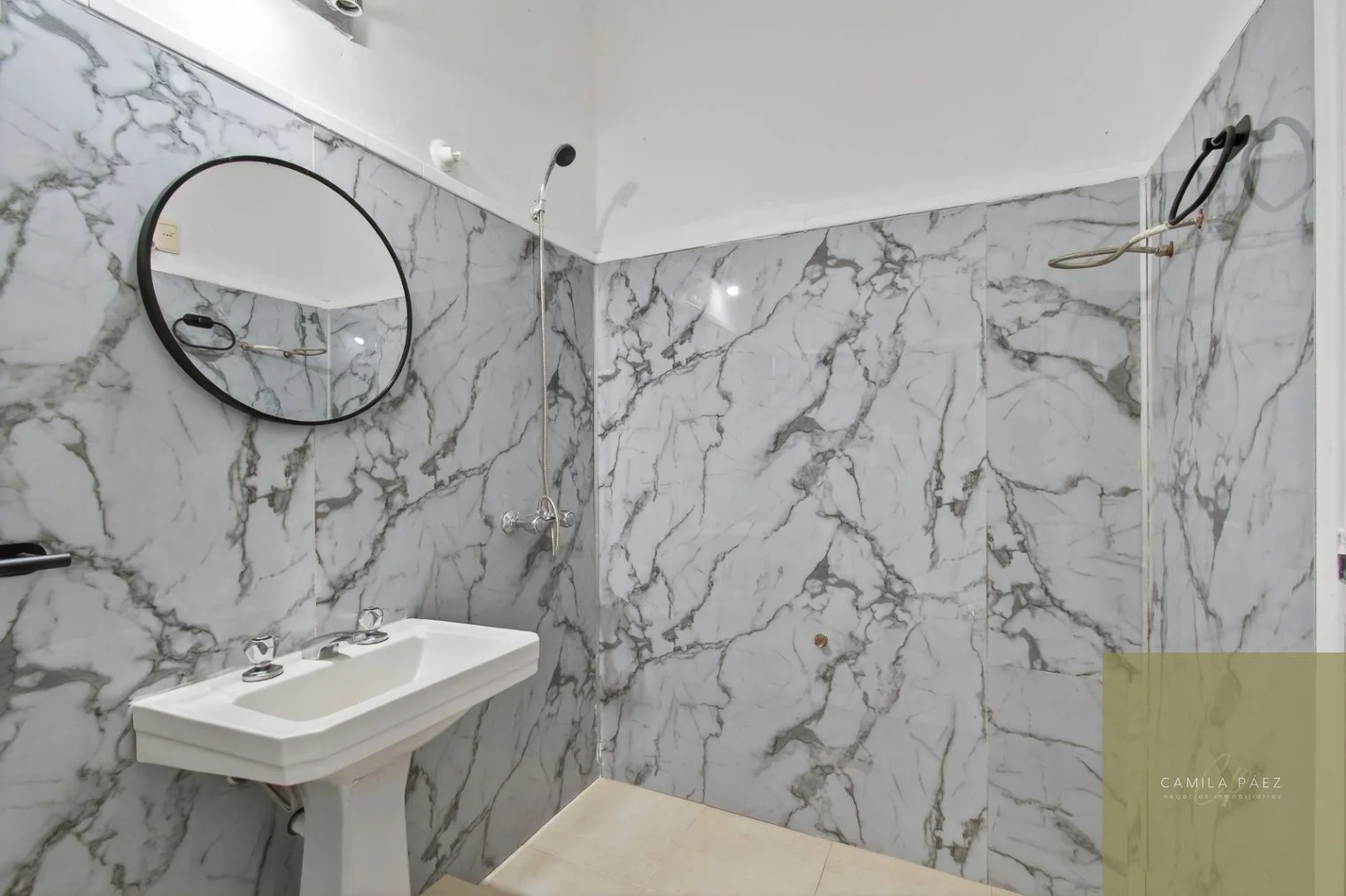 Al lado del dormitorio se encuentra el baño reciclado recientemente, el cual cuenta con un metraje de 3,8m2