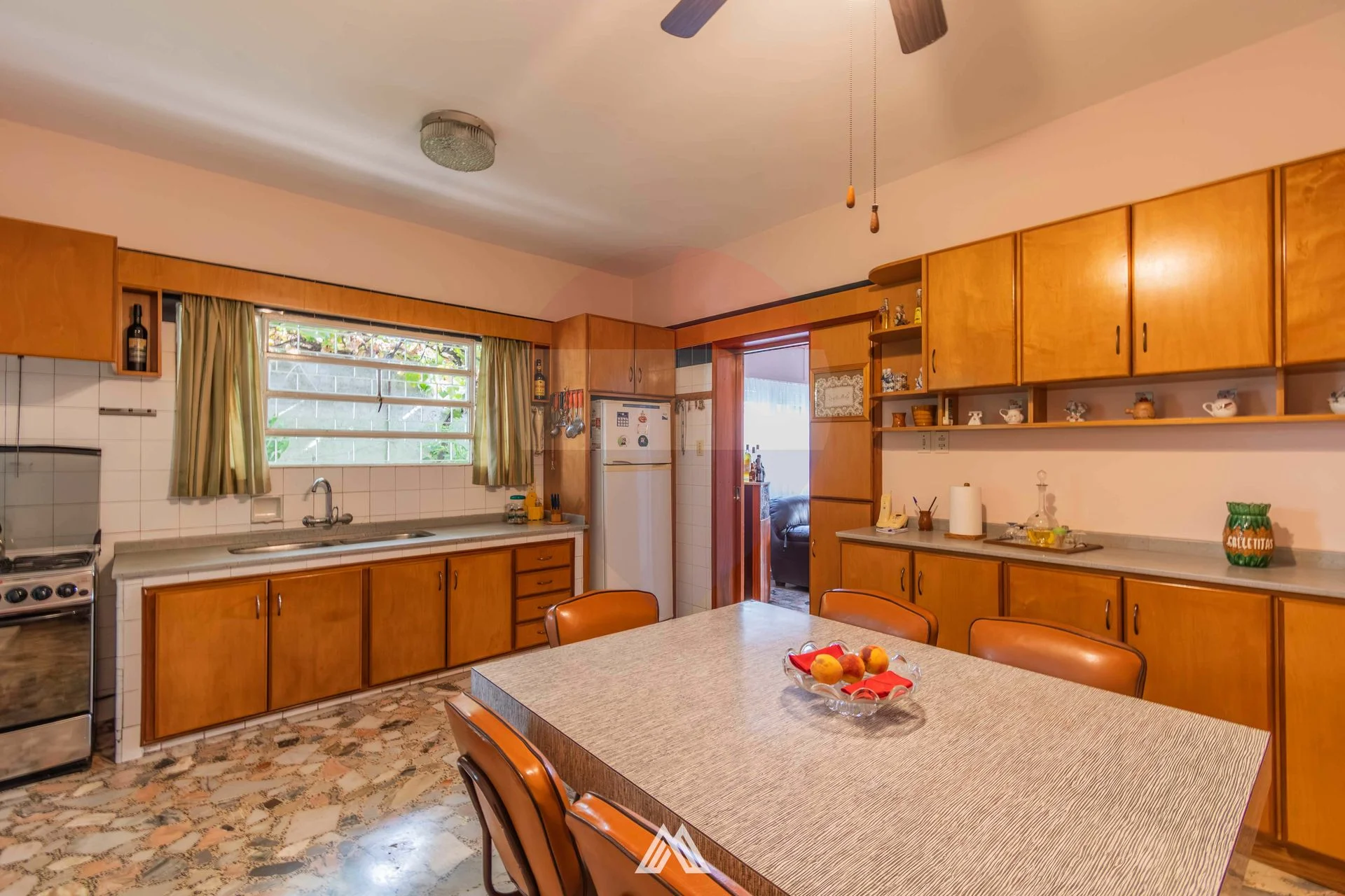 Se desarrolla toda en planta baja, con jardín al frente, garaje, parrillero, galpón/taller y fondo.