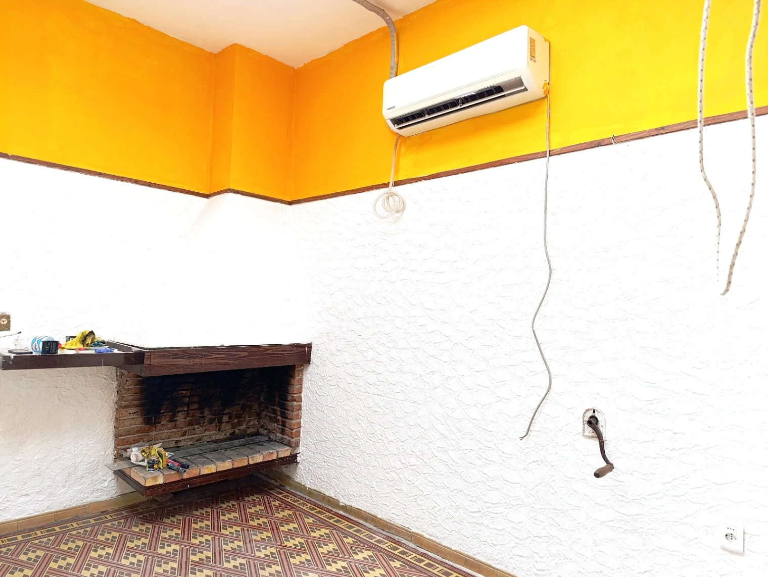 Comedor de grandes dimensiones muy iluminado y ventilado con estufa a leña.
