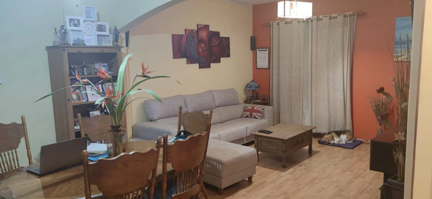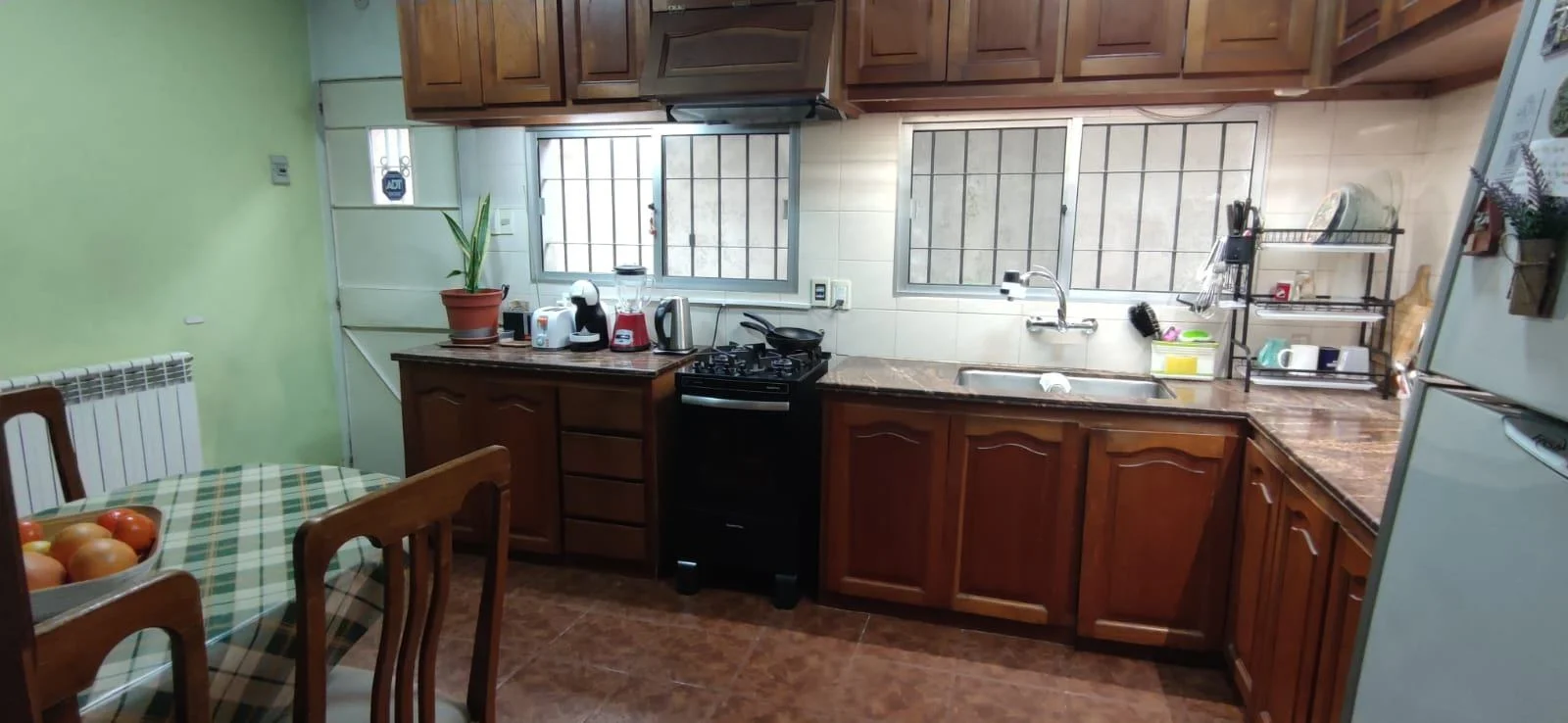 El interior de la vivienda está en perfectas condiciones y se compone de un luminoso living comedor, una cocina comedor equipada con placares y conexión para lavarropas, así como tres dormitorios de generosas dimensiones que reciben abundante luz natural. También se incluye una habitación ideal para utilizar como oficina o escritorio. La casa dispone de dos baños, uno completo y otro social. Todas las áreas cuentan con calefacción central programable y radiadores, además de equipos de aire acondicionado inverter nuevos en el living y en los dormitorios. La galería techada, con espacio para hasta cuatro autos, incluye un parrillero y un horno de pan, ideal para disfrutar de momentos en familia o con amigos, todo iluminado con tecnología LED para las noches.