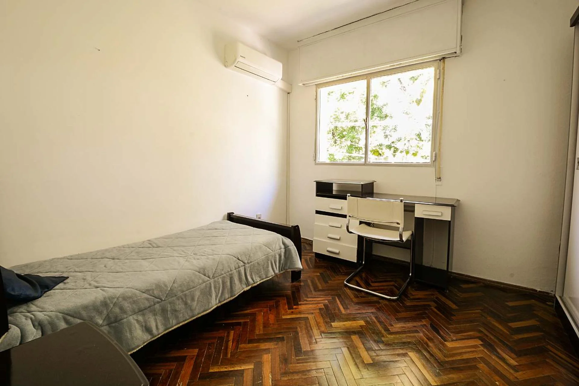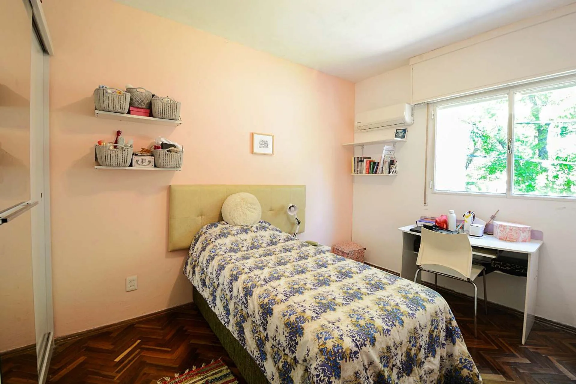 El dormitorio principal al frente con ventanal que brinda buena ventilación e iluminación y baño en suite completo creando un espacio totalmente autónomo, y destacan los pisos de parquet en perfecto estado.
