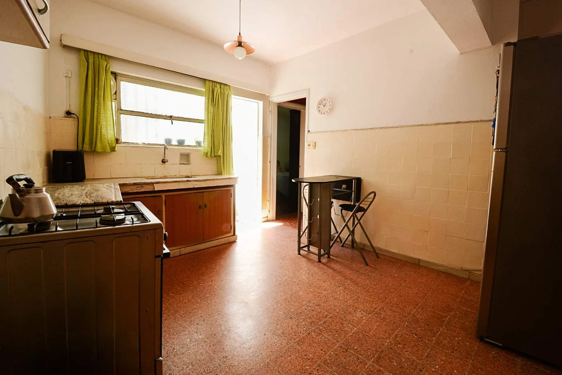 Gran cocina/comedor con amplio lugar de guardado y salida a pequeño patio con parrillero.
