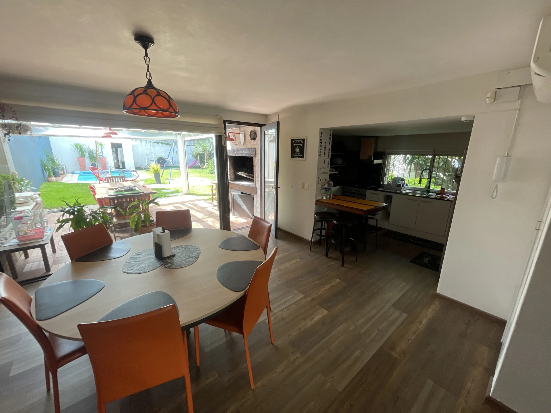 LA CASA SE DESARROLLA EN DOS PLANTAS. AL ACCEDER POR LA PUERTA PRINCIPAL, NOS RECIBE UN ESTAR CON MUY BUENA ENTRADA DE LUZ, QUE DA PASO AL LIVING COMEDOR PRINCIPAL, UN AMBIENTE AMPLIO Y LUMINOSO GRACIAS A UN VENTANAL QUE SE VINCULA DE MANERA DIRECTA CON EL JARDÌN . EN ESTA MISMA PLANTA SE ENCUENTRA UNA HABITACIÓN AL FRENTE Y UN ESCRITORIO CON BAÑO, IDEAL PARA UTILIZAR COMO DORMITORIO, OFICINA O ESPACIO DE TRABAJO. TAMBIÉN CUENTA CON UN JACUZZI INTERIOR CON BUENA ILUMINACIÓN NATURAL, SEGUIDO DE UN CÁLIDO ESTAR DIARIO EQUIPADO CON ESTUFA A LEÑA DE ALTO RENDIMIENTO, CONECTADO A LA COCINA Y CON SALIDA HACIA LA BARBACOA.