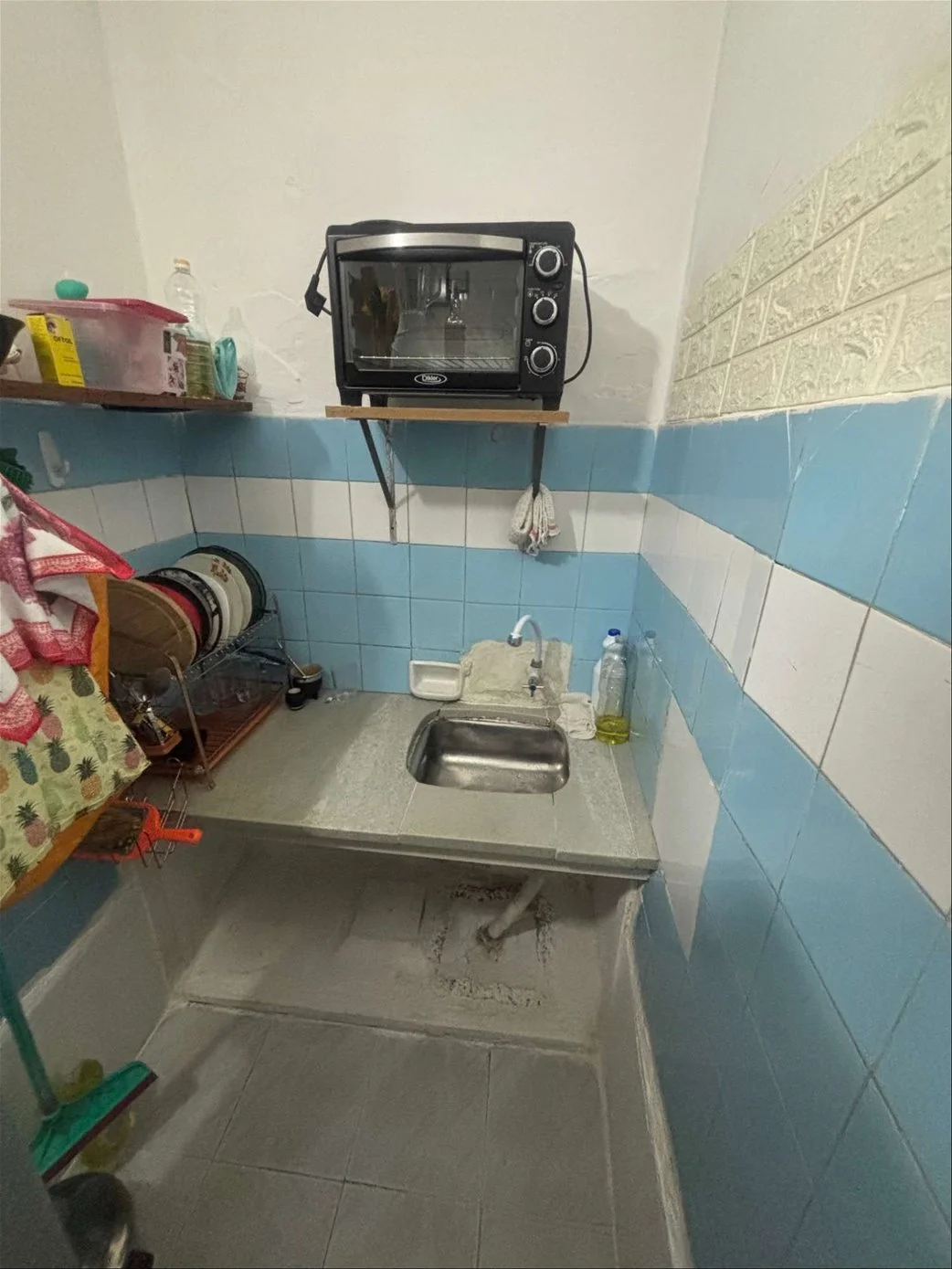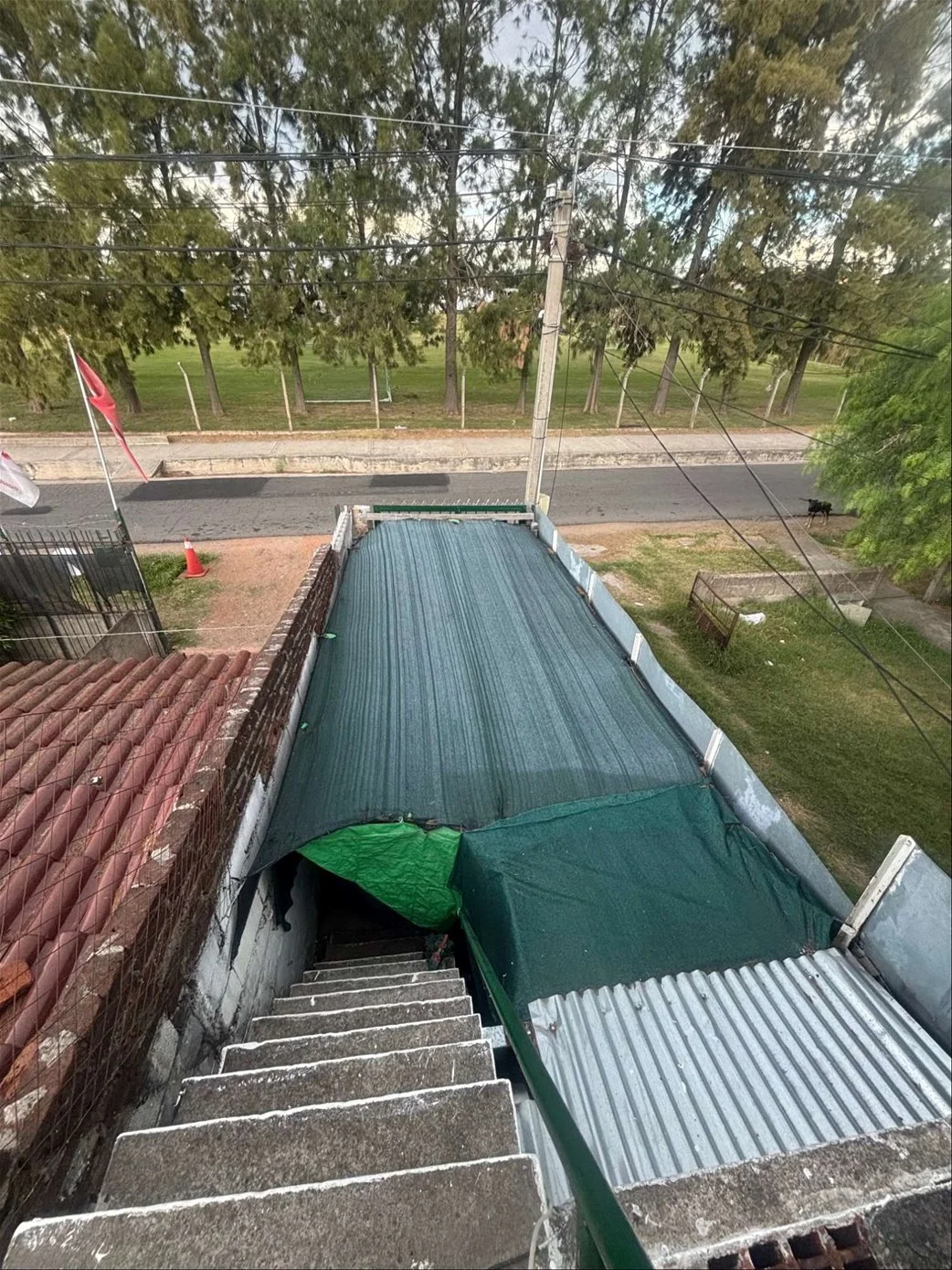En planta alta con acceso por escalera exterior, un dormitorio, cocina y baño revestidos en cerámica. Aberturas en madera con rejas