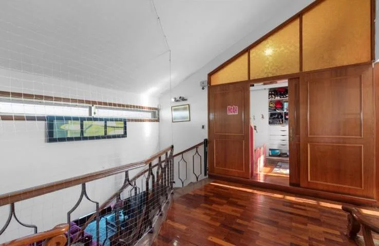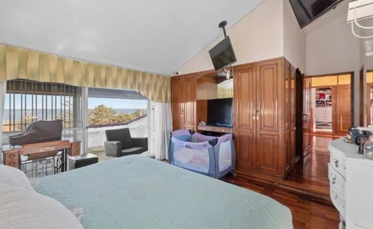 La planta alta cuenta con tres dormitorios, dos de ellos en suite. El principal incluye vestidor, un baño con hidromasaje y ducha independiente, y un encantador balcón con vistas al mar.