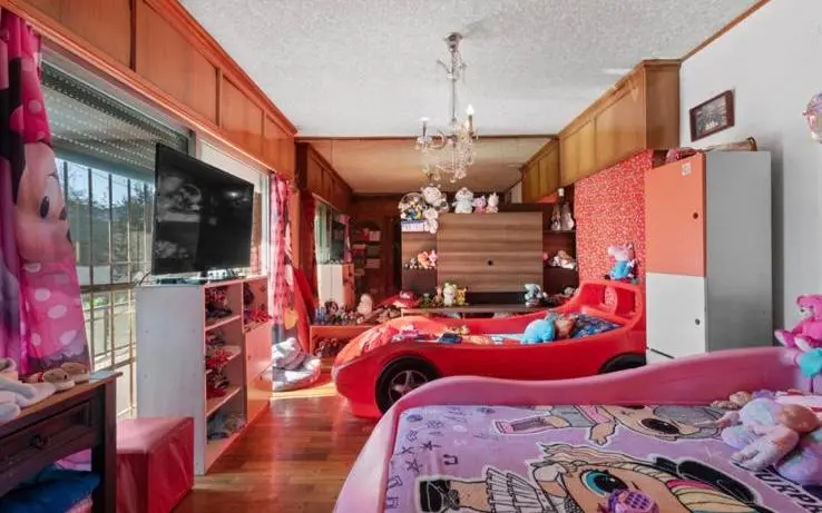 El exterior ofrece un amplio jardín, piscina cerrada, barbacoa con baño completo y garaje con capacidad para seis autos.