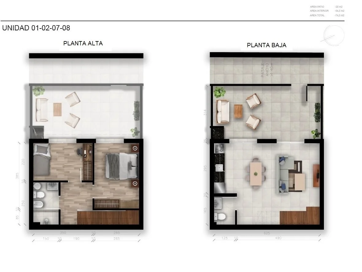 oUnidades 02, 07 y 08: Dúplex con patio frontal.