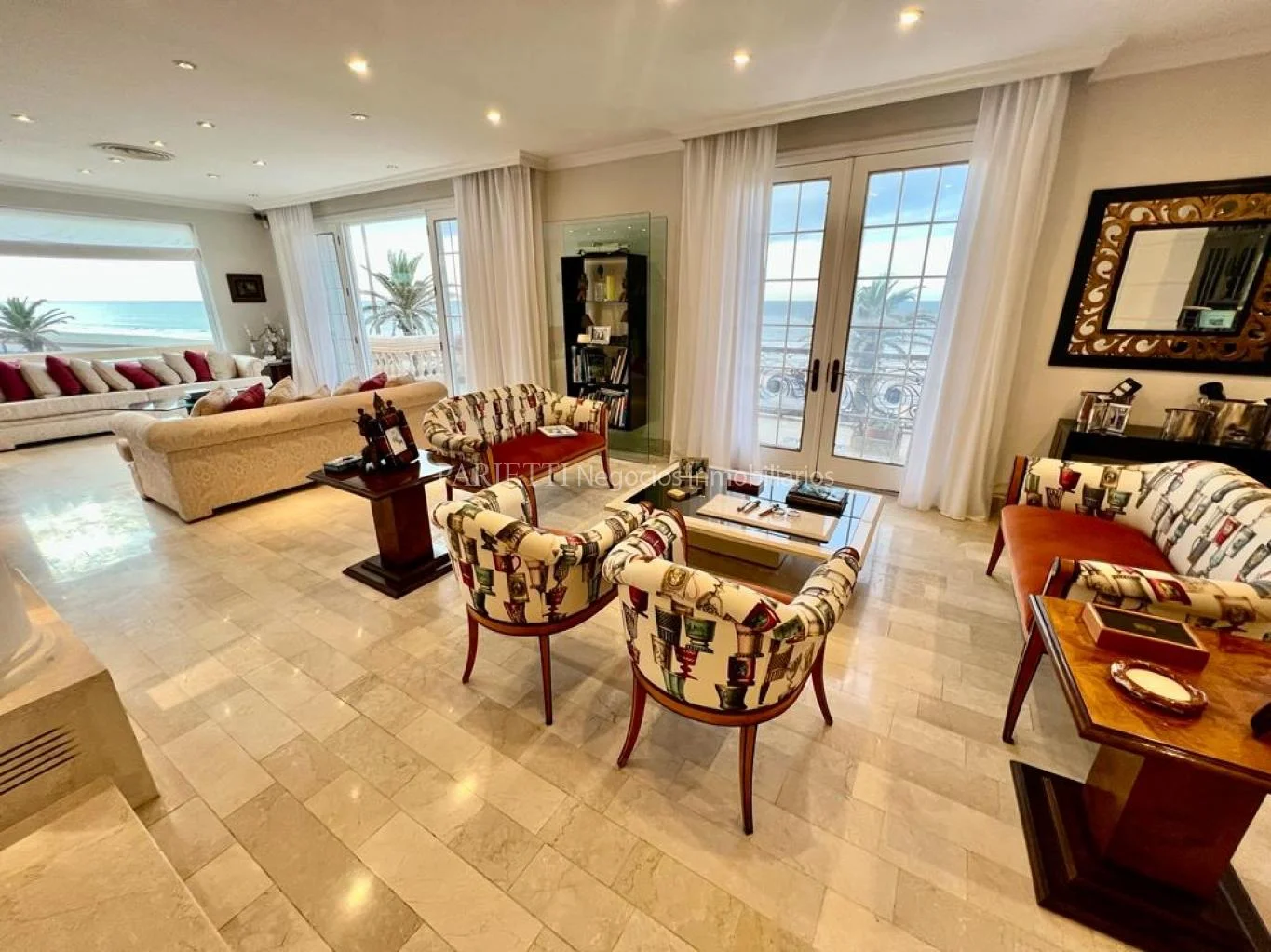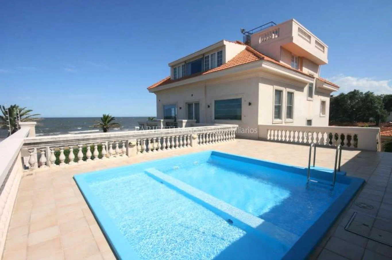 Espectacular Residencia de Estilo sobre Rambla, reciclada totalmente. Apta vivienda o destino comercial ( oficinas, Petit Hotel) Pallier de entrada amplio, toilette, estar-comedor, 6 suites, cocina principal, cocina secundaria, ascensor, aire acondicionado central, gimnasio, sala de cine, parrillero con alero sobre la piscina. garage para tres autos. 2da. piscina con vista al mar en terraza. Dependencia de servicio.
