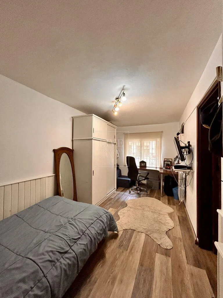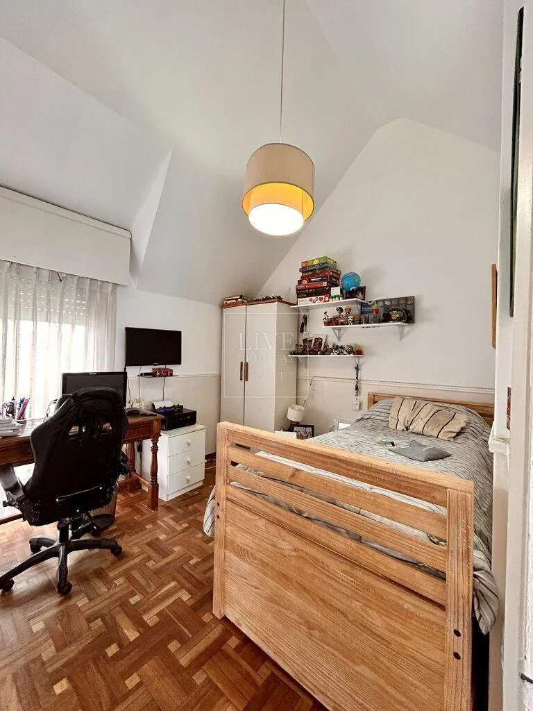 El garage hoy es un dormitorio amplio con escritorio en suite de construcción liviana. Puede volverse a hacer garage.