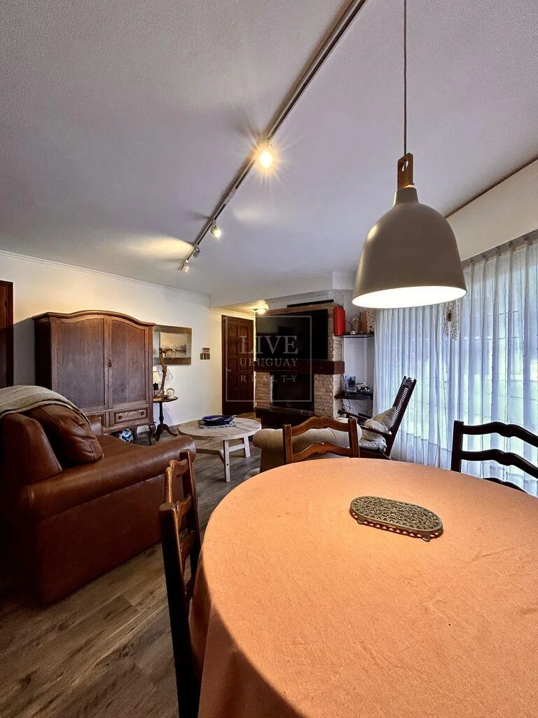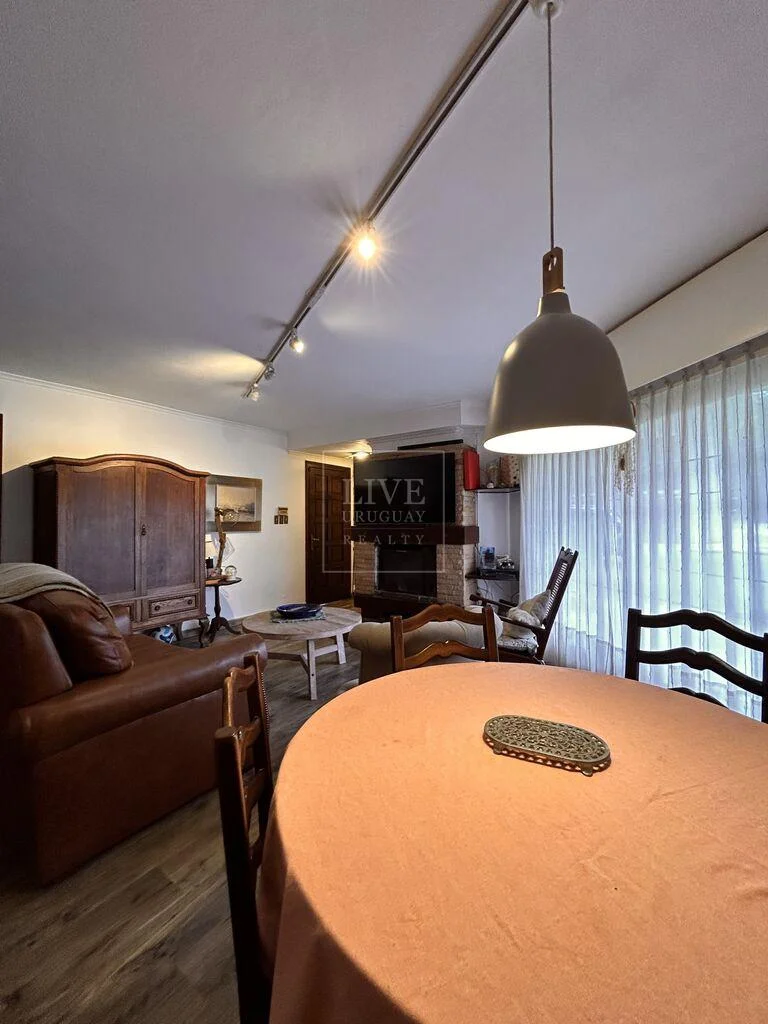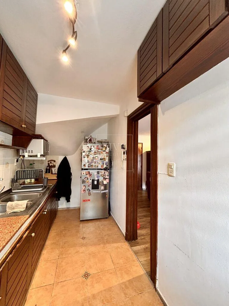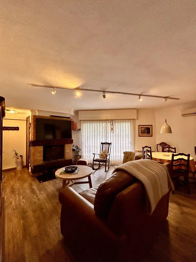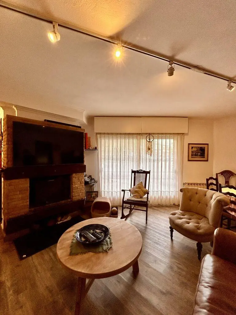 Living comedor con estufa a leña y cocina definida con buenos placares.