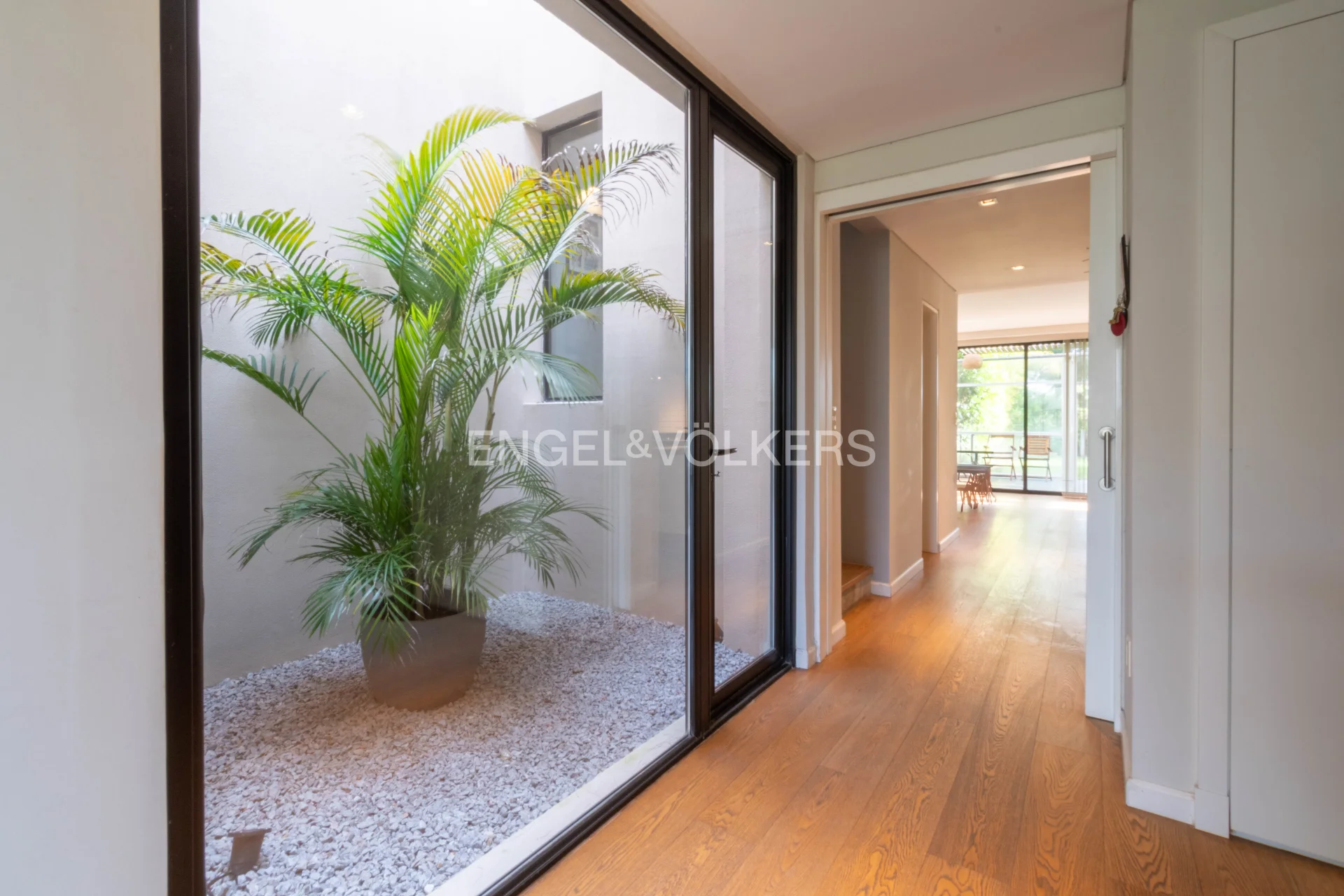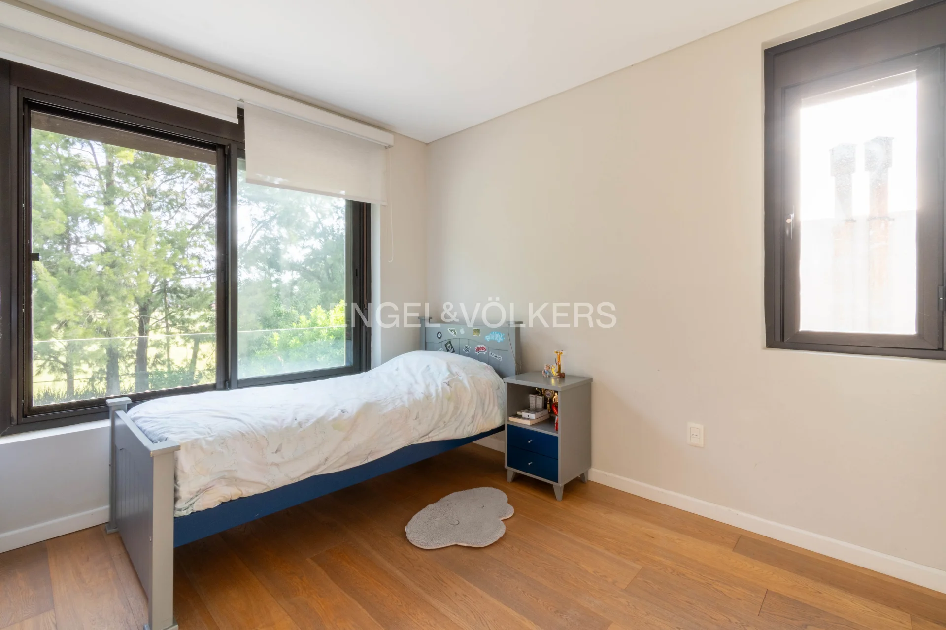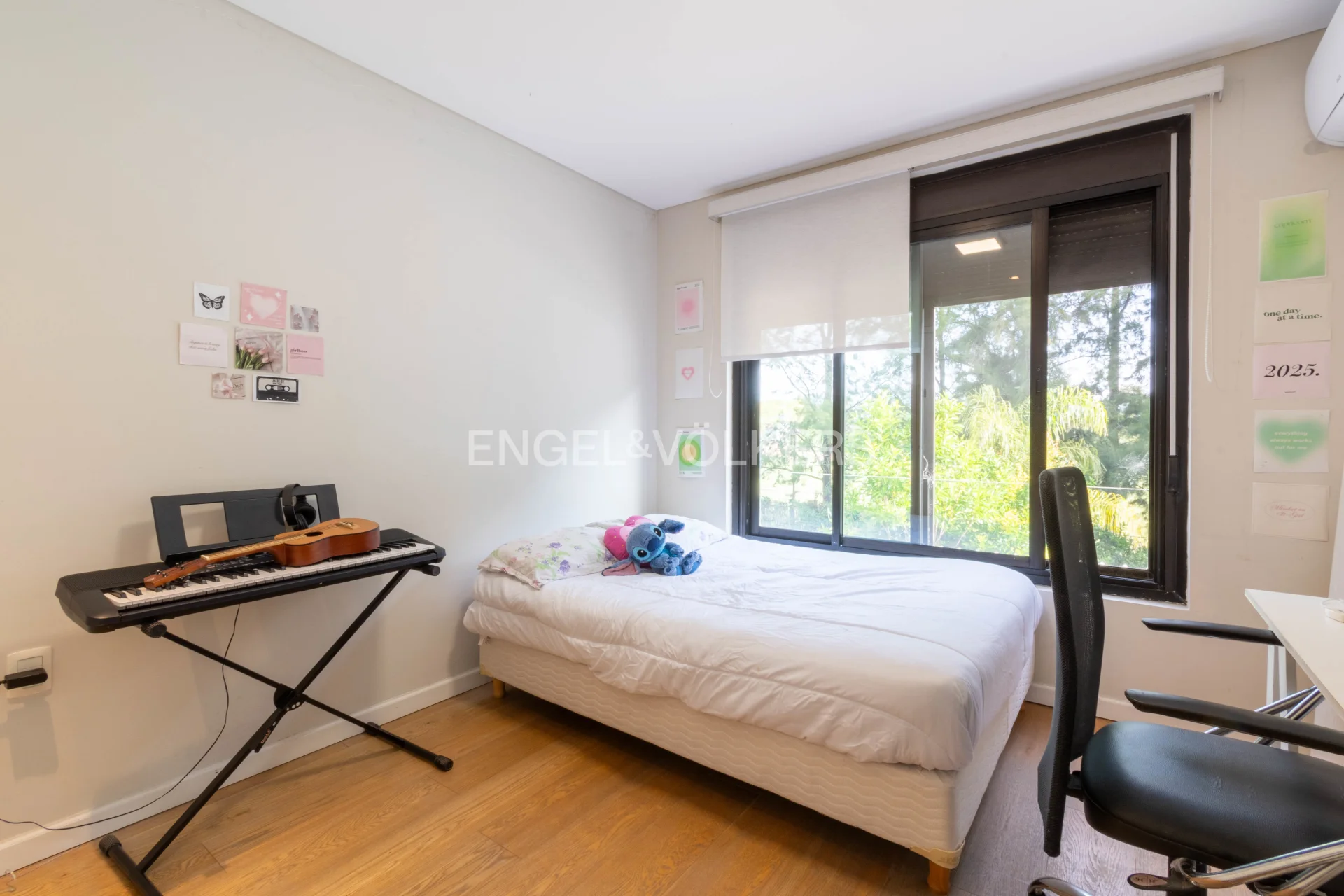En la planta alta se encuentran los 3 dormitorios que se conectan por un luminoso hall de distribución gracias a una claraboya. La mastersuite es amplia, con hermosa luz gracias a su orientación al norte y un vestidor con baño en suite. Los otros dos dormitorios tienen vista al jardín privado, placares y comparten un baño con bañera.