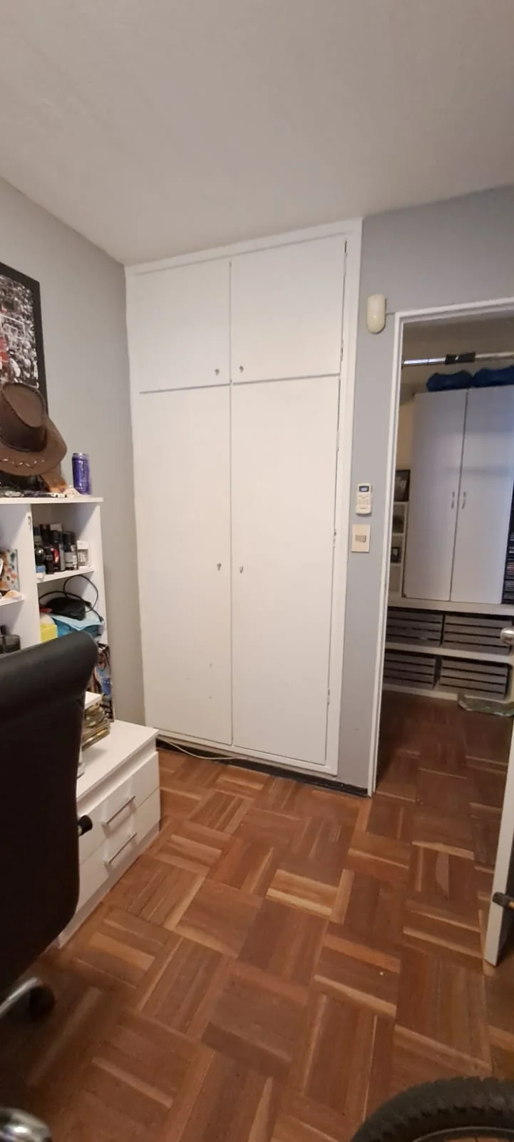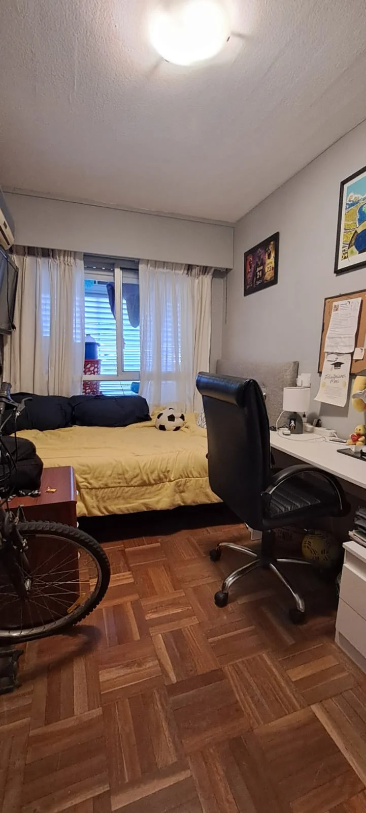Dormitorios: La propiedad cuenta con dos amplios dormitorios. Ambos mantienen la calidad de los pisos de parquet y cuentan con equipos de aire acondicionado instalados. Ambos dormitorios poseen placard empotrado y persianas. El dormitorio principal cuenta con salida a balcón al frente. Ambos cerramientos cuenta con persianas de enrollar.