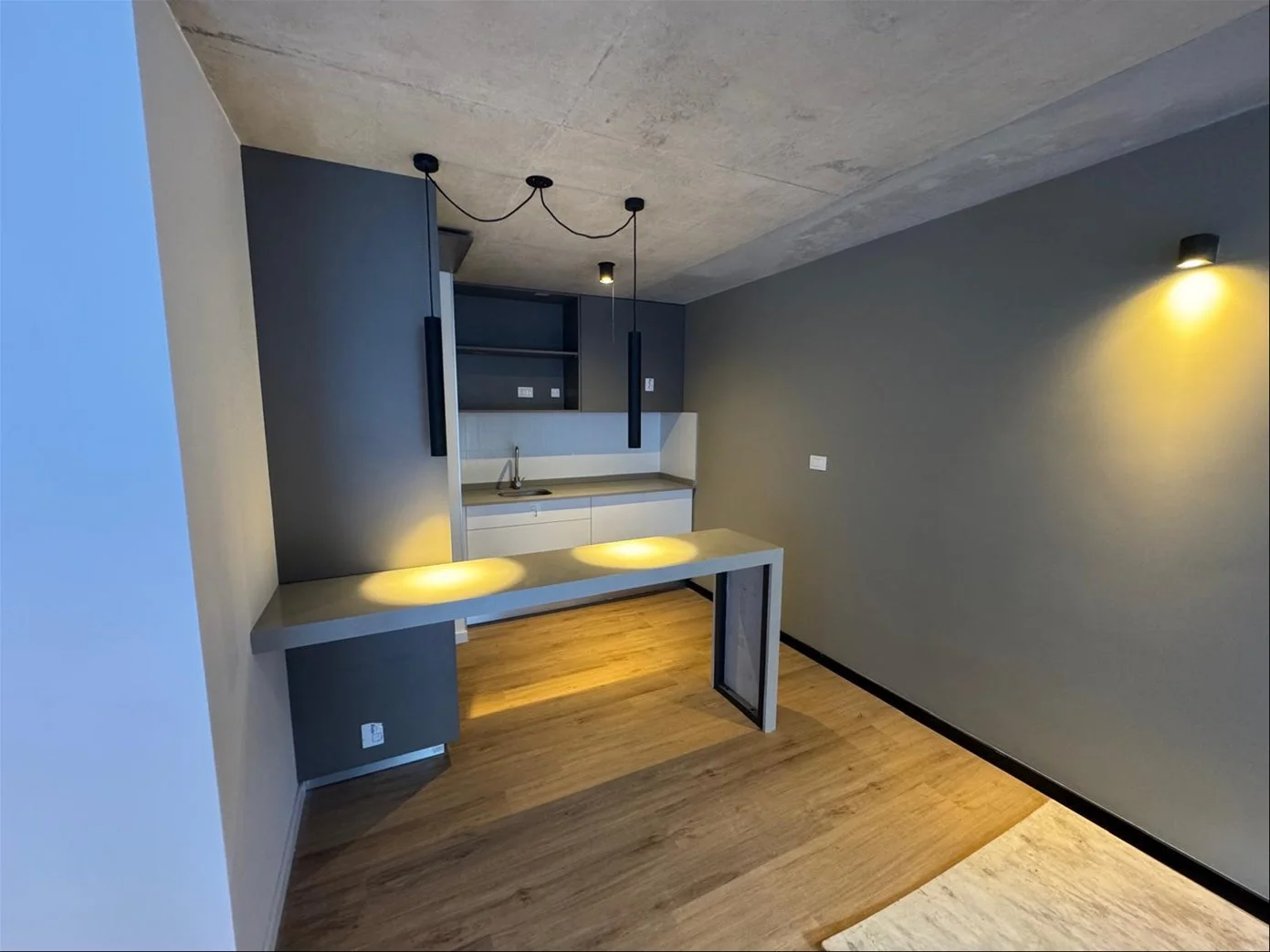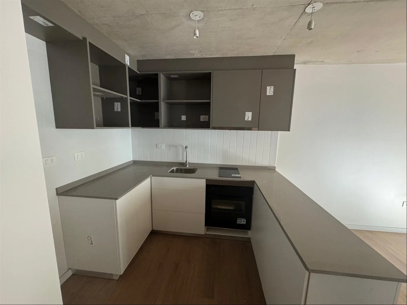 El apartamento cuenta con aberturas exteriores en Aluminio y vidrio, cortina de enrollar con sistema monoblock en dormitorios, pisos símil madera en living y dormitorio. Horno y anafe eléctrico en la cocina con muebles sobre y bajo mesada