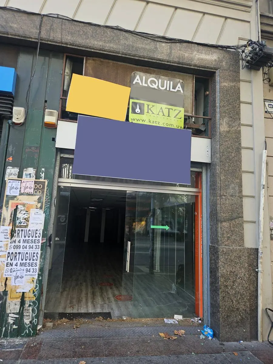 18 de Julio y Cuareim, frente de 4 mts con doble altura, cortina metálica automática, 66 m2 de salón, 60 de deposito y sotano de 54 m2, 2 baños con kitchenette.
