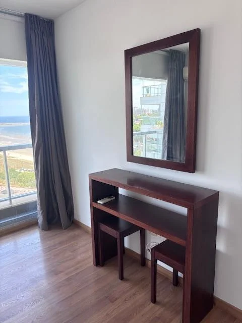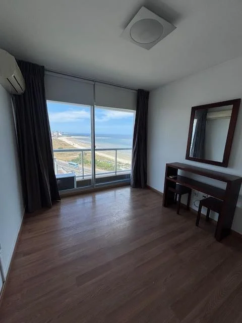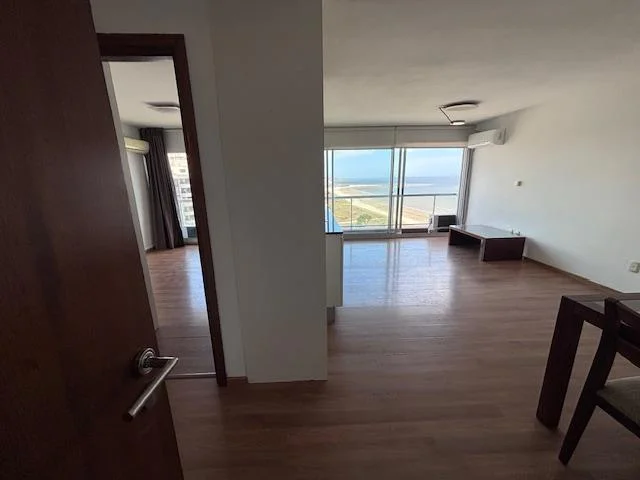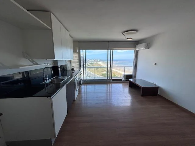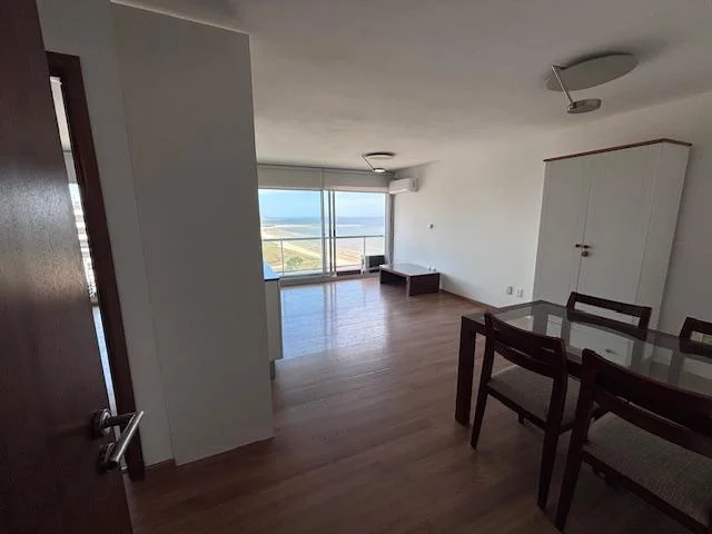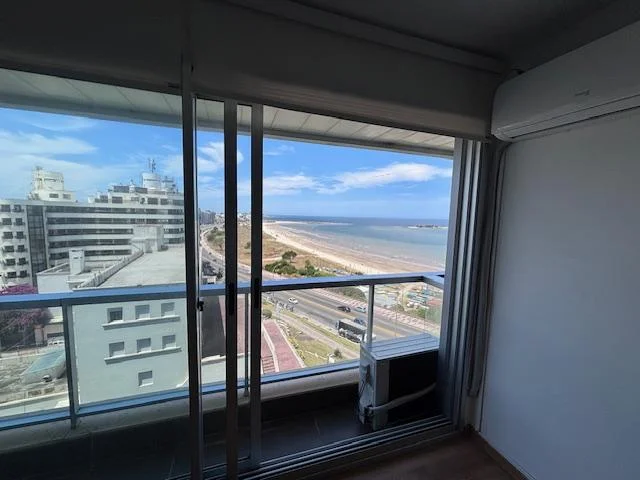 Tiene cocina integrada a un living de cómodo metraje, también con vista al mar y ventanales al piso que hacen aún más disfrutable la vista de la Rambla Montevideana.