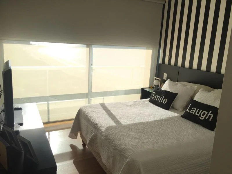 El edificio ofrece SEGURIDAD 24HRS, piscina climatizada, gimnasio, barbacoa y jardines de uso común, y cancha de tennis.