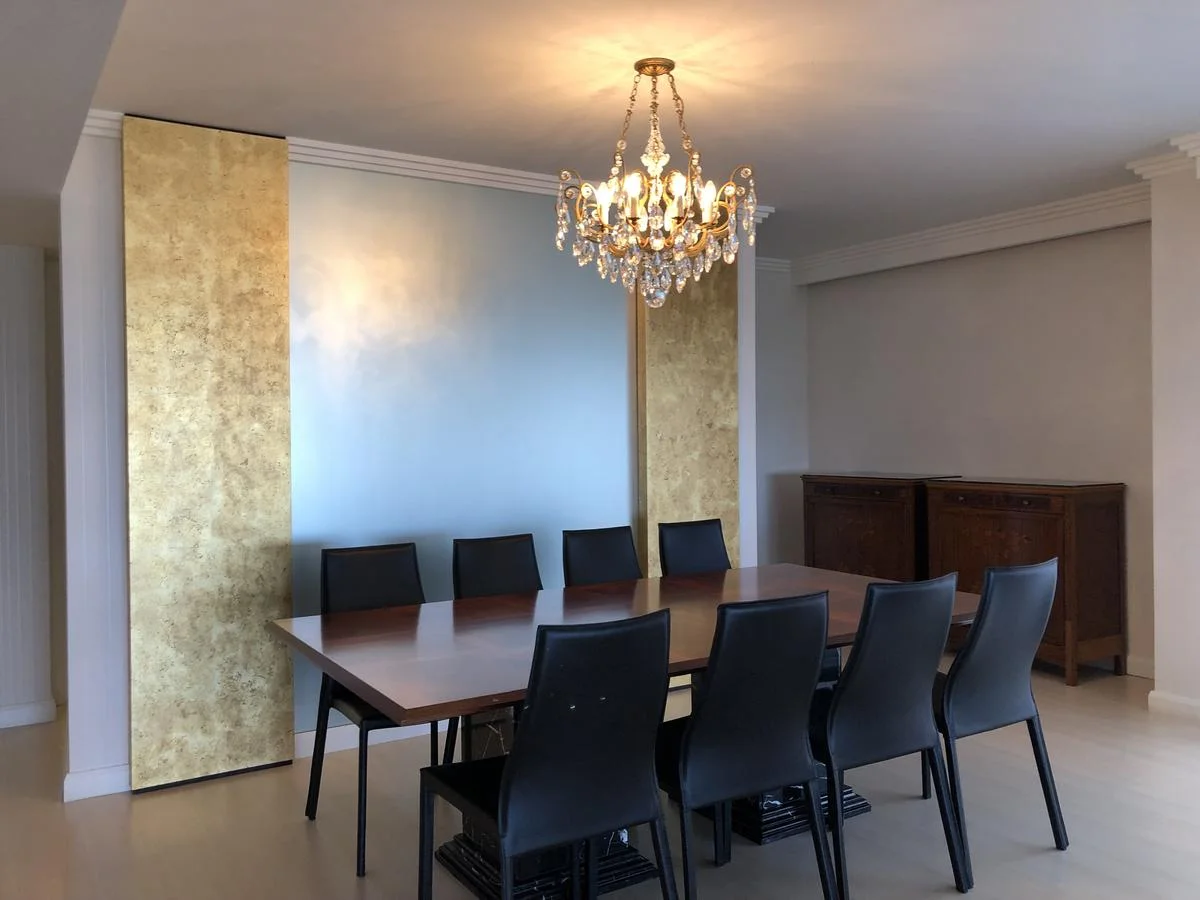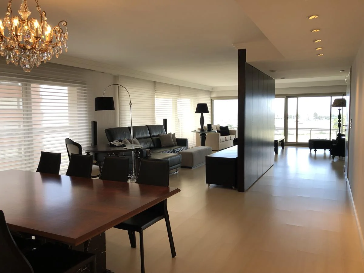 Gran recepción con 2 terrazas en desnivel, todos los dormitorios en suite, servicio completo. Cocina con triple mesada, placares arriba y bajo mesada. Excelente calidad de terminaciones. Puerta principal Italiana con sistema de guillotina y máxima aislación acústica. Agua caliente central. Central telefónica. CON LINEA BLANCA - SIN MUEBLES Garaje para 4 autos