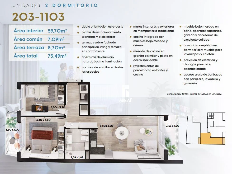 Se ofrece a la venta moderno apartamento en etapa de desarrollo, con entrega programada para marzo de 2026, ubicado en el corazón del barrio Cordón, sobre Arenal Grande entre Cnel. Brandzen y Gral. Rivera. Una zona vibrante y muy bien conectada, próxima a universidades, centros de salud, comercios y servicios.