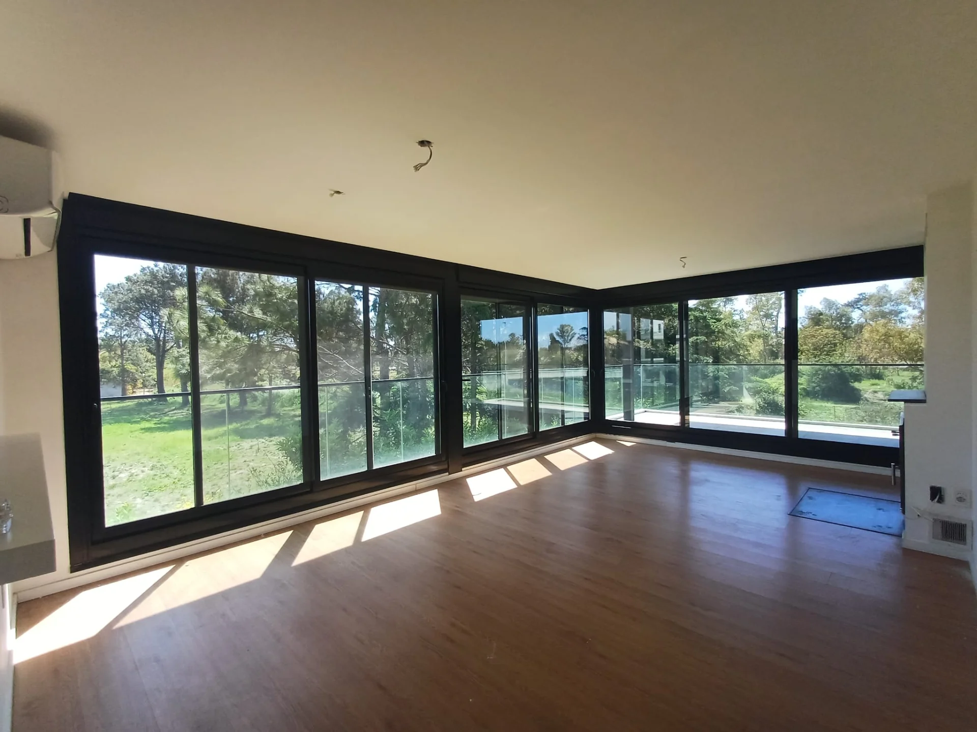 AA en living comedor y dormitorios, persianas con sistema eléctrico, aberturas con mosquiteros, losa radiante eléctrica con termostato en cada habitación, conexión de lavarropas y lavavajillas. Horno empotrado, anafe y campana extractora. Calefón.