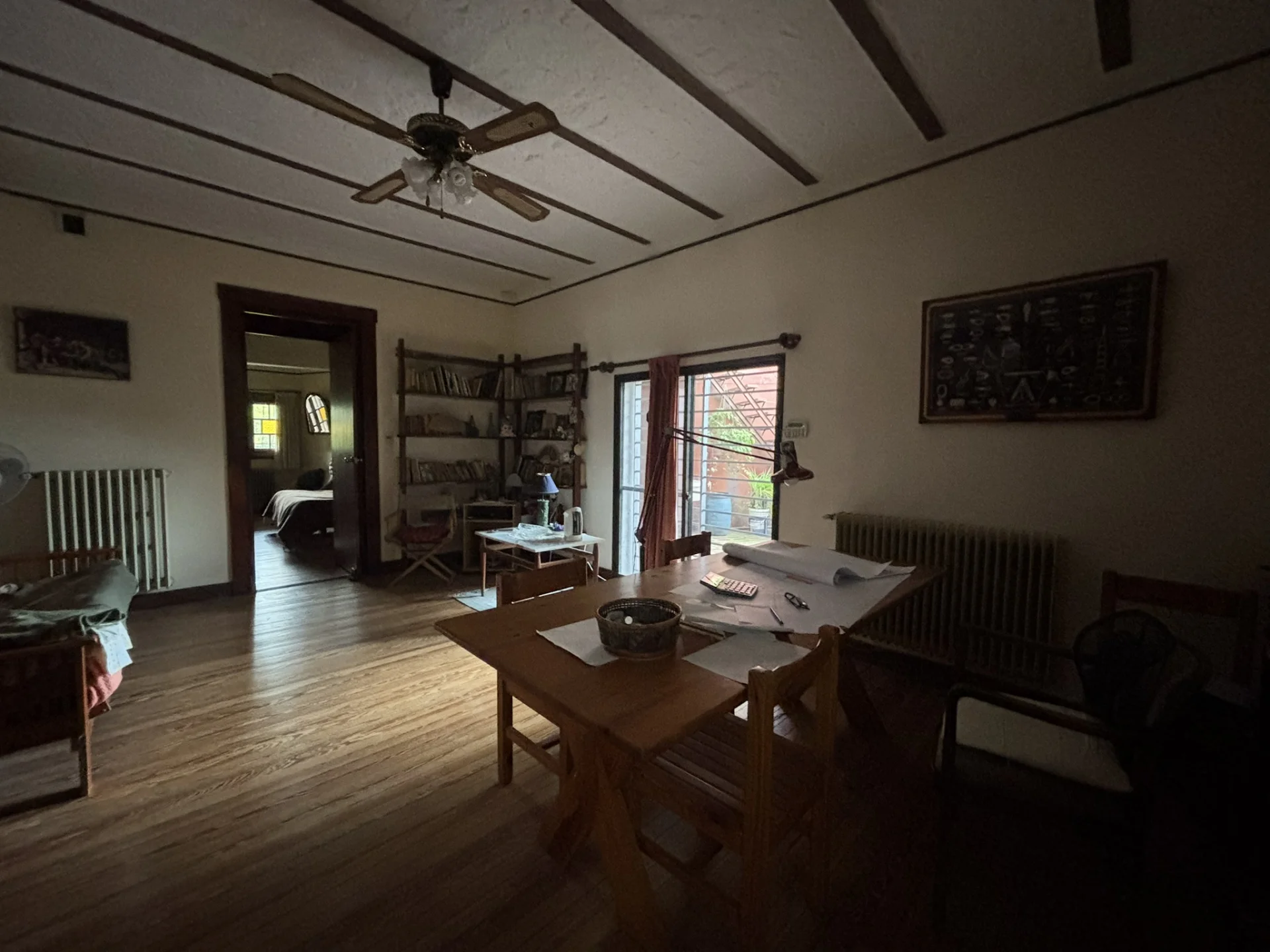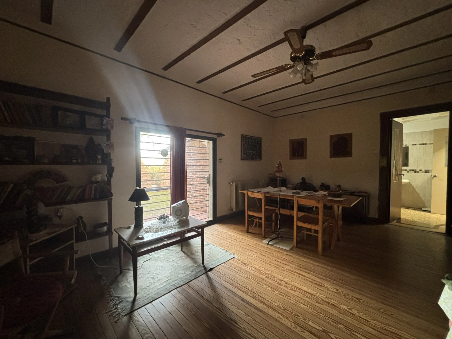 En 1 nivel. Living y comedor, cocina, 1 dormitorio c/placard y 1 habitación amplia de trabajo (puede ser otro dormitorio), baño completo con doble entrada. Patio con lavadero y acceso a azotea. Jardín al frente. Galería techada con parrillero.
