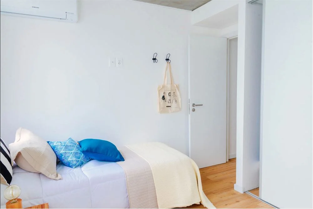 Dormitorio principal con espacio definido para vestidor, segundo dormitorio se entrega con frente de placard, Living comedor con cocina integrada con horno y anafe empotrado.