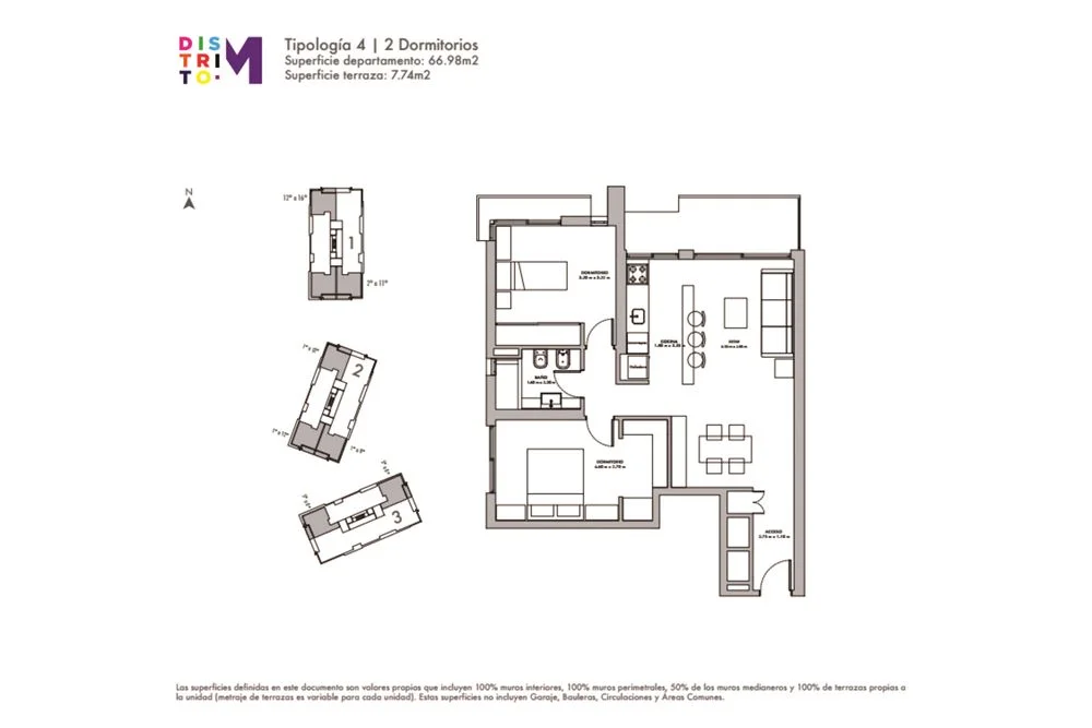 Unidad de 2 dormitorios, de 67 m2 la unidad mas 13 m2 terrazas.