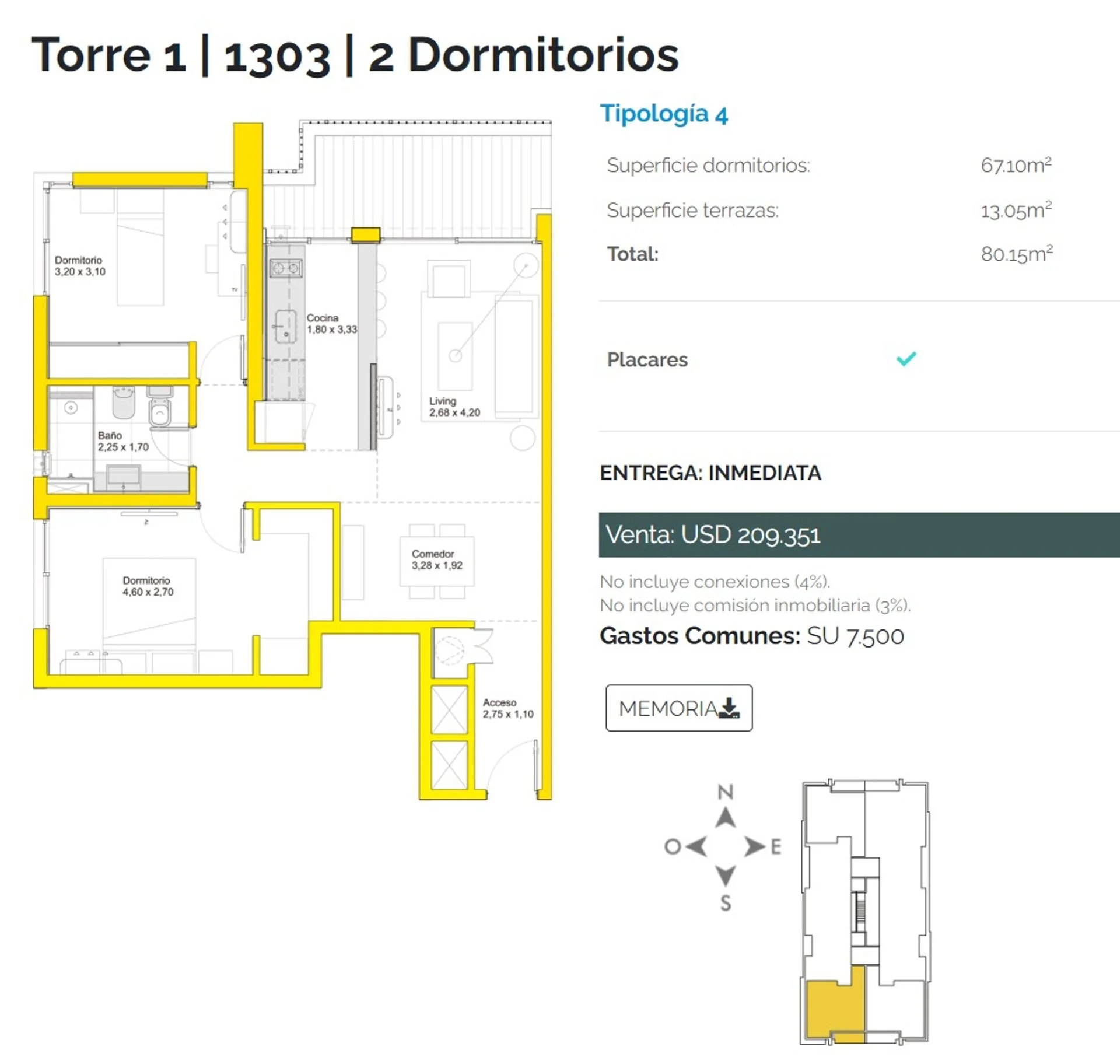 Al precio de la unidad hay que sumarle 4% conexiones.