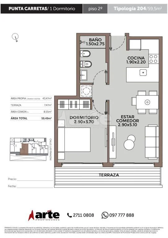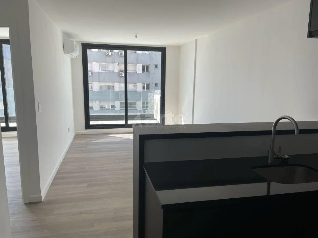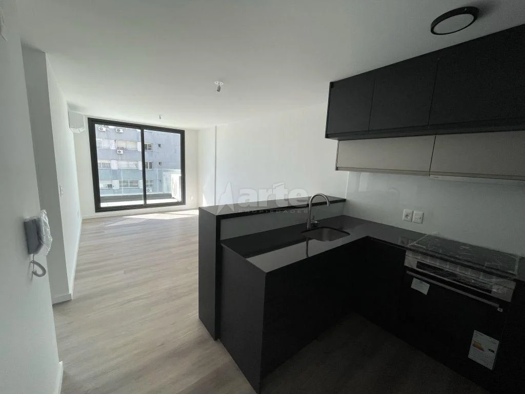 Cómodo apartamento a estrenar en edificio de moderno diseño, con excelentes terminaciones. Amplio living comedor con cocina integrada, mesada en U con buenos placares, equipada con horno, anafe y campana, dormitorio con placar. Tanto el living como el dormitorio sale al amplio balcón.